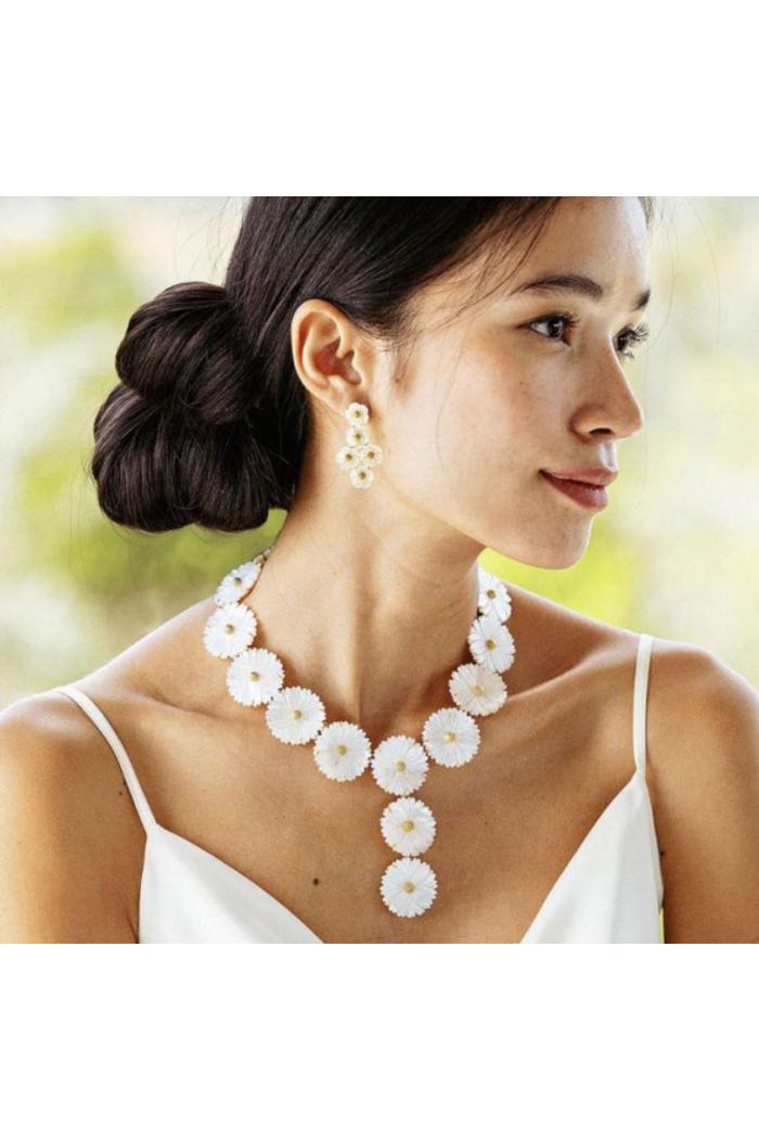A cascade of elegant mother of pearl flowers, accented with golden berry centers in a chandelier shape, makes a subtle statement for everything from brunch with your squad to a romantic getaway with your beloved. Fresh, playful, and polished, wear this pair to finish any ensemble and be reminded that the world is your oyster!