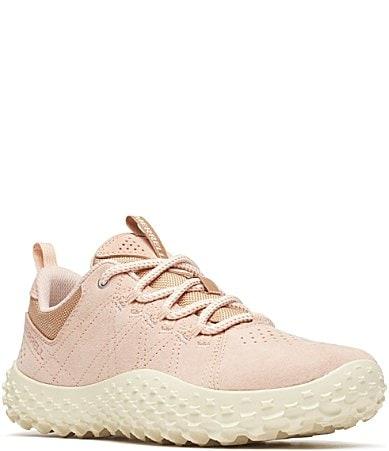 From Merrell, the Womens Wrapt Suede Sneakers feature:Suede leather upperSofter and lighter internal EVA constructionBellows tongue keeps out debrisMetal hook with traditional lace closure100% recycled breathable mesh liningMesh wrapped insoleCleansport NXT treated for natural odor controlMerrell Barefoot 2 construction is designed to keep the foot in a natural positionMerrell Quantum Grip durable rubber outsole that enables confidence in the most extreme trail environmentsStack Height: 13-13mmImported.