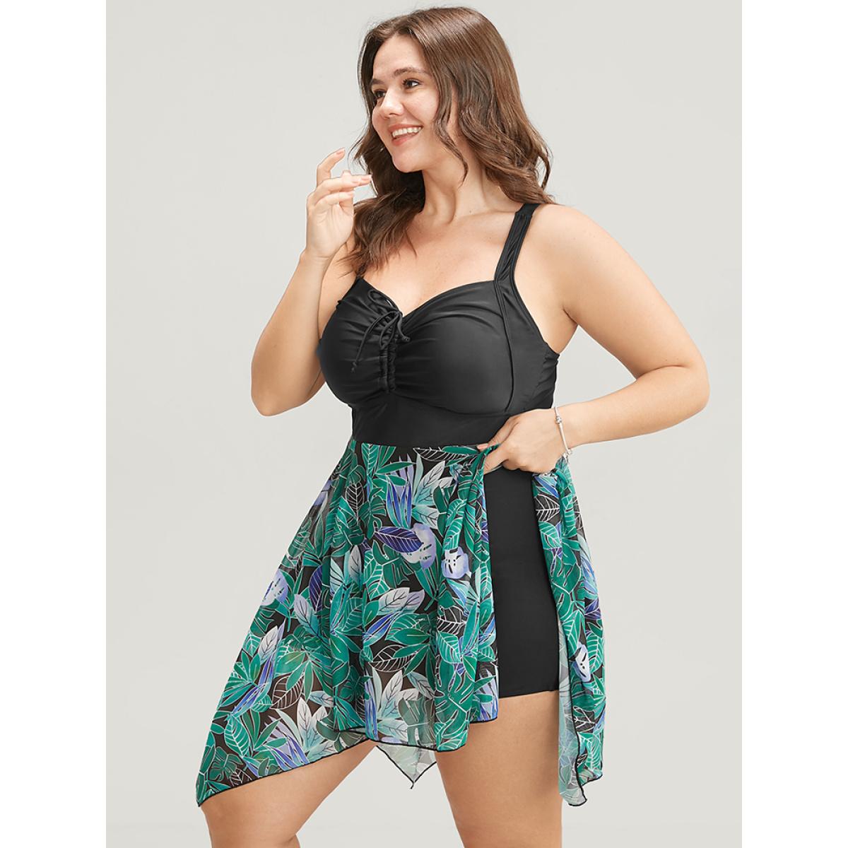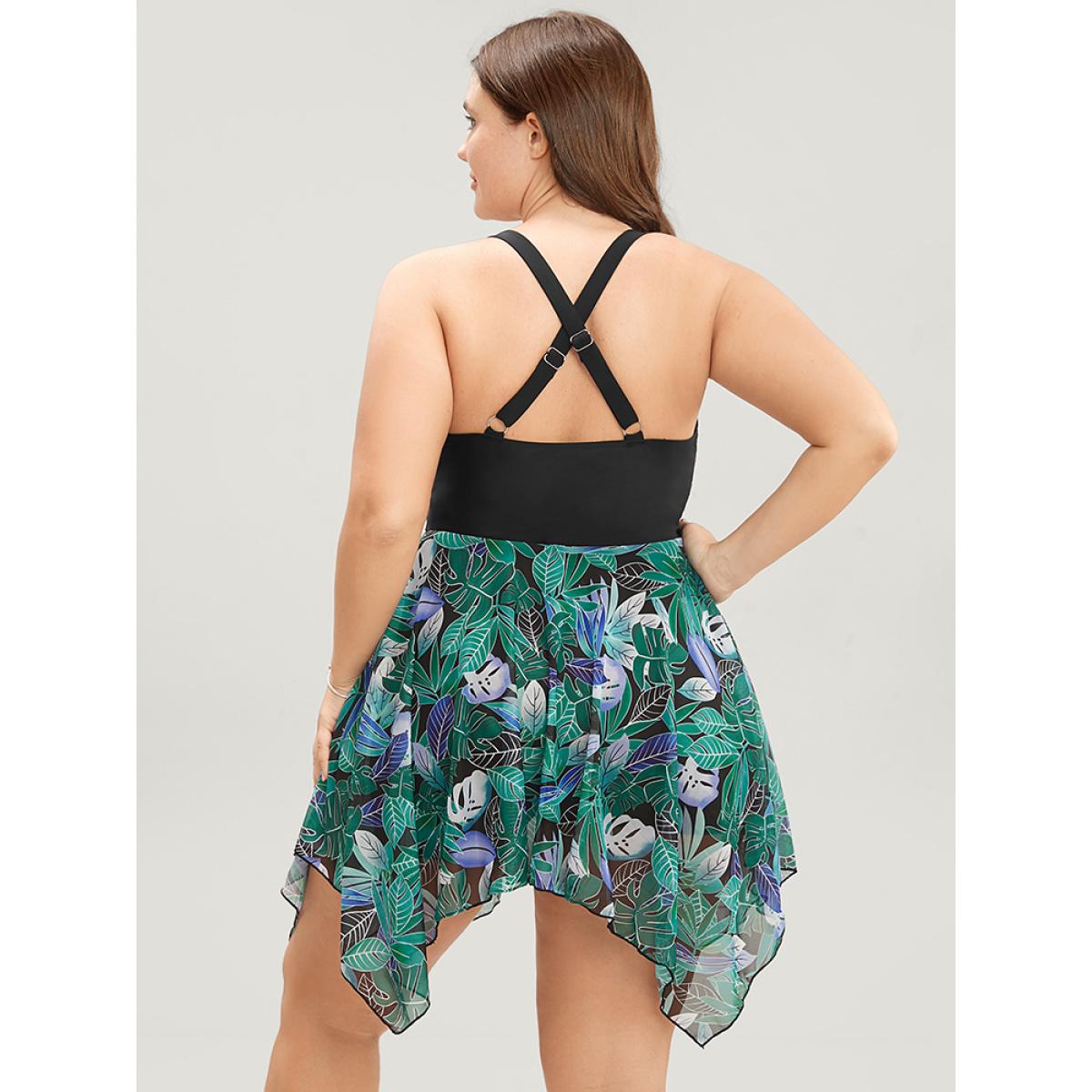 Mesh Adjustable Straps Plus Size Women Tropical Swim Dress Very Stretchy Bodycon Sleeveless V Neck Vacation Swim Dresses BloomChic