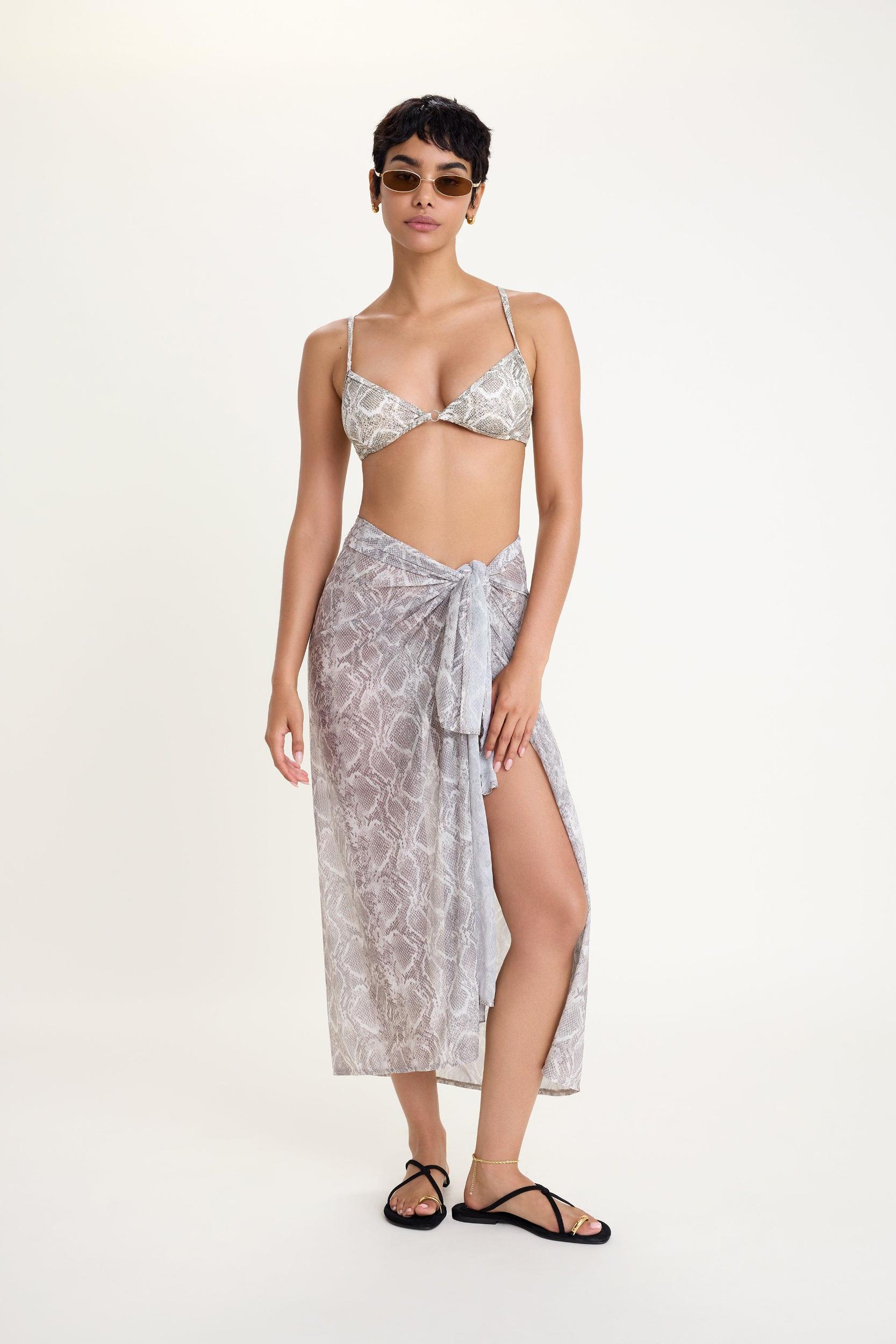 The Mesh Sarong brings a light, airy touch to any outfit with its sheer, flowing fabric. Ideal for layering over your swimsuit or adding a relaxed finish to your summer look. Self-tieBreathable fabric Fabric: 90% Recycled Polyester 10% Elastane Care: Machine wash cold with like colors, gentle cycle. Only non-chlorine bleach when needed. Tumble dry low. Cool iron if needed.Model is size 0 wearing a S