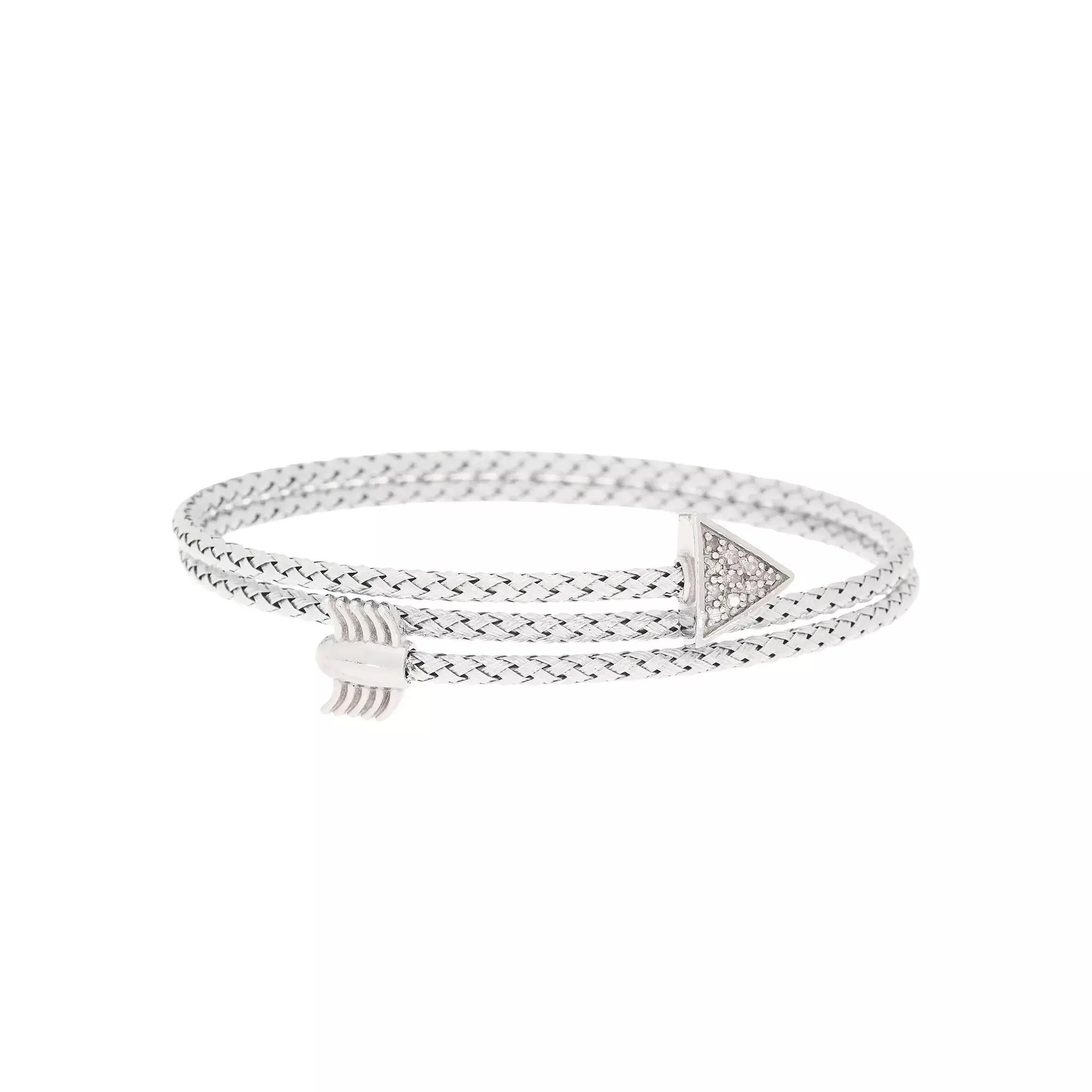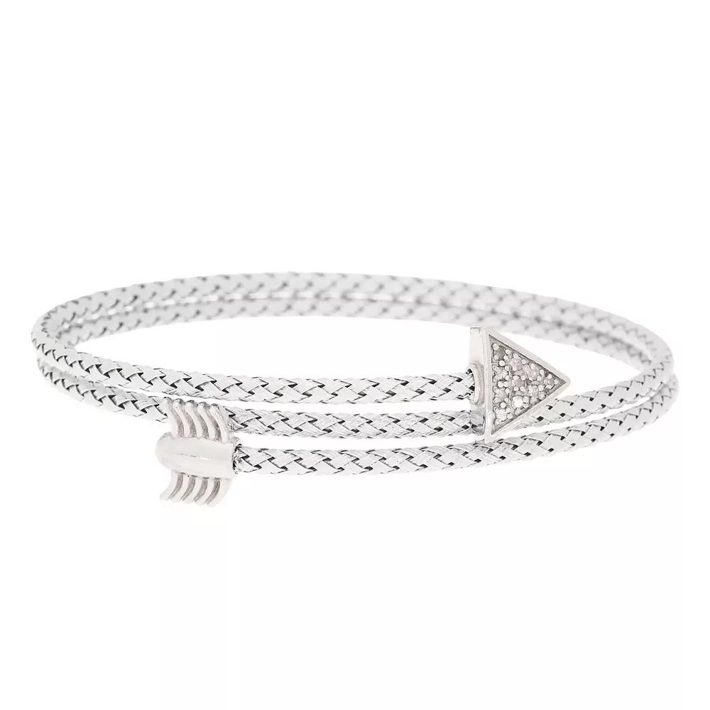 Add elegant final touches to any outfit with this Meshmerise 1/10 Carat T.W. diamond arrow wrap bangle bracelet. Click on this JEWELRY & WATCHES GUIDE to learn about fit, styles, materials and more! Add elegant final touches to any outfit with this Meshmerise 1/10 Carat T.W. diamond arrow wrap bangle bracelet. Click on this JEWELRY & WATCHES GUIDE to learn about fit, styles, materials and more! FEATURES Bracelet length: 7 in. Nickel free Metal: sterling silver Silver Plating: rhodium Rose Gold Plating: 18k rose gold Gold Plating: 18k gold Finish: polished Packaging: boxed ImportedDIAMOND DETAILS Total weight: 1/10 ct. Color Grade: G-H Clarity Grade: SI1, SI2 Shape: round Setting: prong Gemstones may have been treated to enhance their appearance. Special care may be required. Please visit our Gemstone Treatment & Special Care Guide for more information. Image(s) may be enlarged to show detail. Diamond weights are approximate. Diamond Total Weights may vary between .01 and .13 ct. Some diamonds consist of fewer than 17 facets. Size: 7". Color: Silver Tone. Gender: female. Age Group: adult.