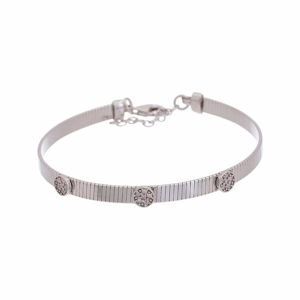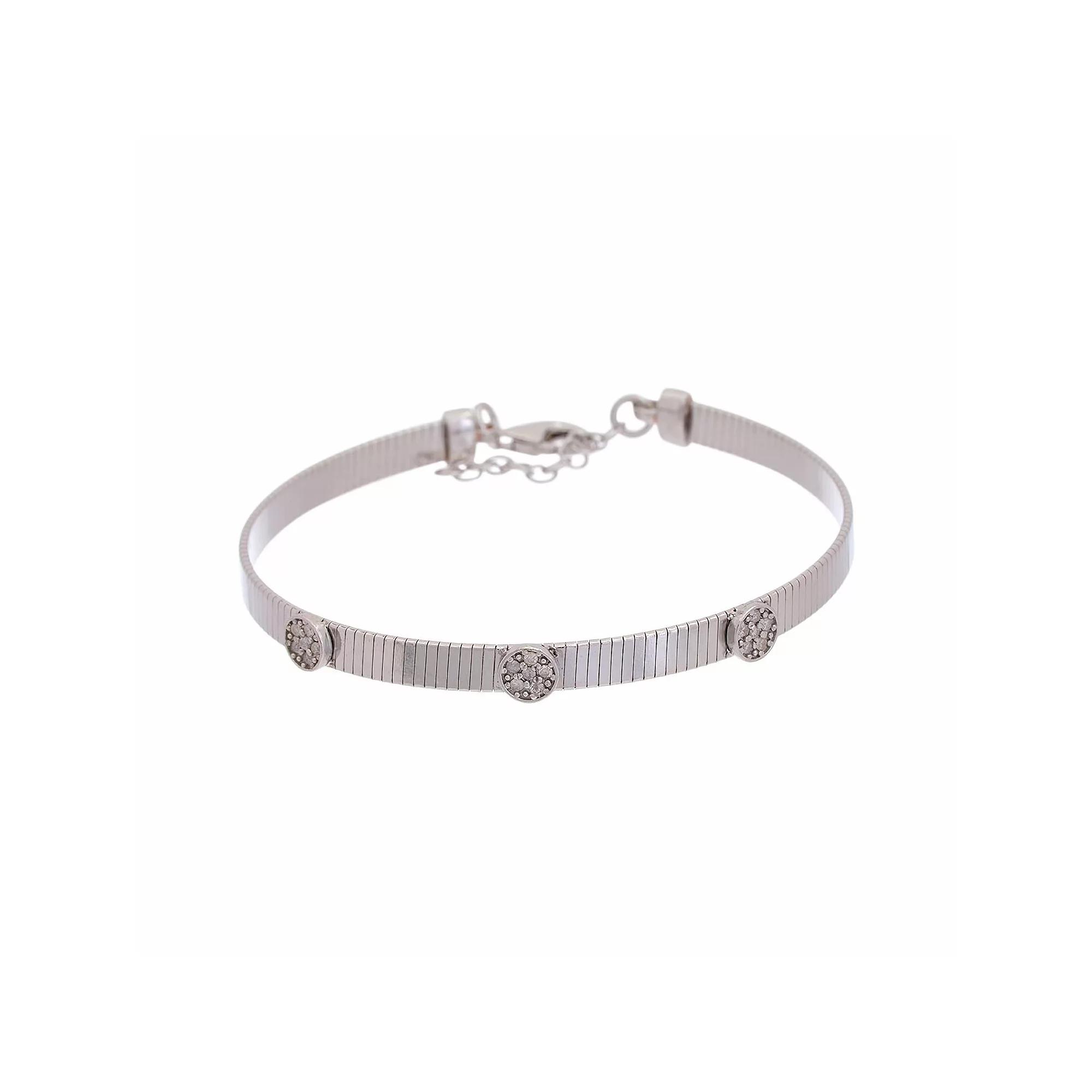 Add elegant final touches to any outfit with this Meshmerise 1/10 Carat T.W. diamond round embellished bracelet. Click on this JEWELRY & WATCHES GUIDE to learn about fit, styles, materials and more! Add elegant final touches to any outfit with this Meshmerise 1/10 Carat T.W. diamond round embellished bracelet. Click on this JEWELRY & WATCHES GUIDE to learn about fit, styles, materials and more! FEATURES Bracelet length: 7 in. Nickel free Metal: sterling silver Silver Plating: rhodium Gold Plating: 18k gold Finish: polished Packaging: boxed ImportedDIAMOND DETAILS Total weight: 1/10 ct. Color Grade: G-H Clarity Grade: SI1, SI2 Shape: round Setting: prong Gemstones may have been treated to enhance their appearance. Special care may be required. Please visit our Gemstone Treatment & Special Care Guide for more information. Image(s) may be enlarged to show detail. Diamond weights are approximate. Diamond Total Weights may vary between .01 and .13 ct. Some diamonds consist of fewer than 17 facets. Size: 7". Color: Silver Tone. Gender: female. Age Group: adult.