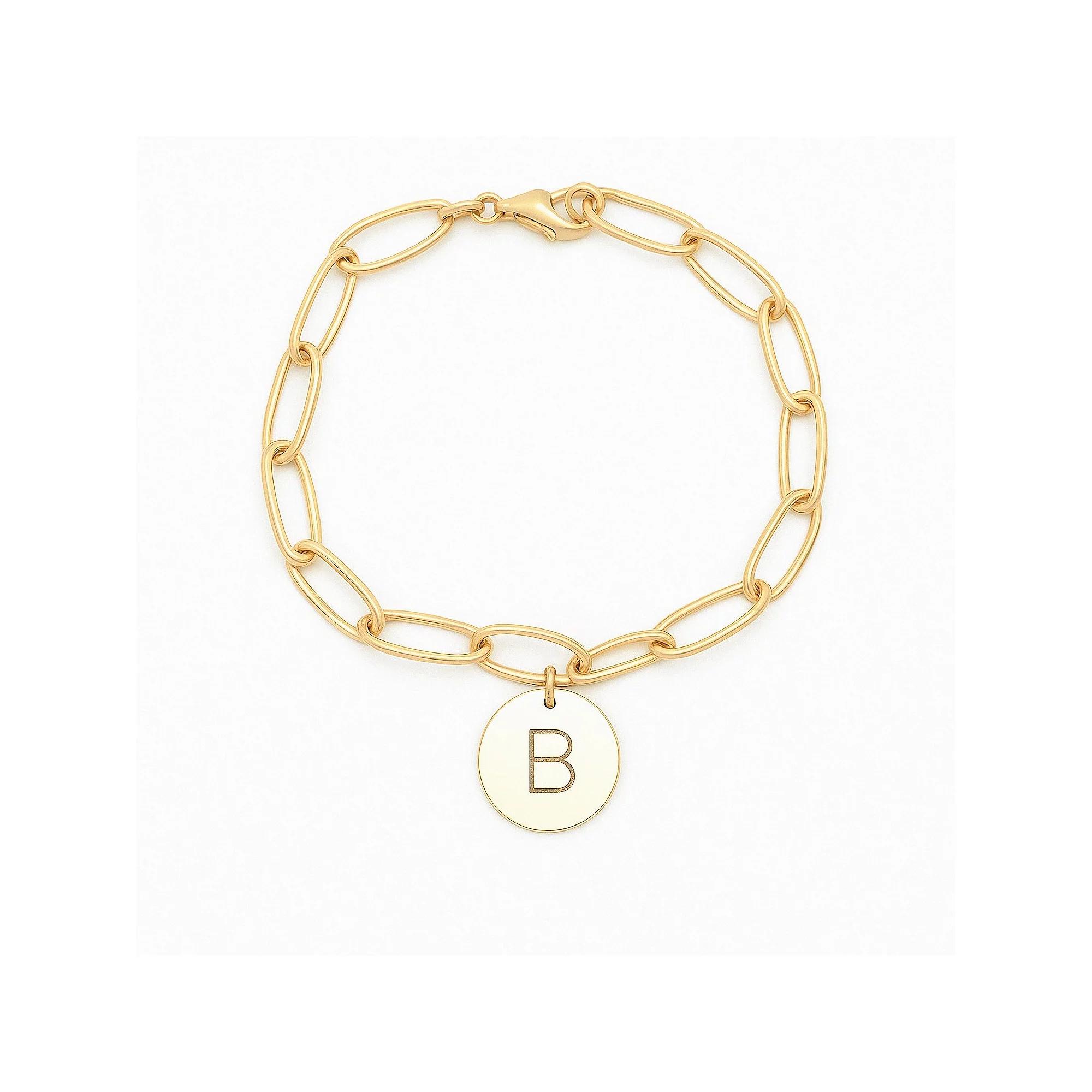 Celebrate your individuality with this Meshmerise 18K gold over silver initial disc link bracelet, crafted with a sleek, polished finish. Click on this JEWELRY & WATCHES GUIDE to learn about fit, styles, materials and more! Celebrate your individuality with this Meshmerise 18K gold over silver initial disc link bracelet, crafted with a sleek, polished finish. Click on this JEWELRY & WATCHES GUIDE to learn about fit, styles, materials and more! FEATURES Bracelet length: 7 in. Clasp: lobster-claw Nickel free Metal: sterling silver Plating: 18k gold Finish: polished Packaging: boxed Size: 6-7" ADJ. Color: Gold Tone B. Gender: female. Age Group: adult. Material: Gold Plate.