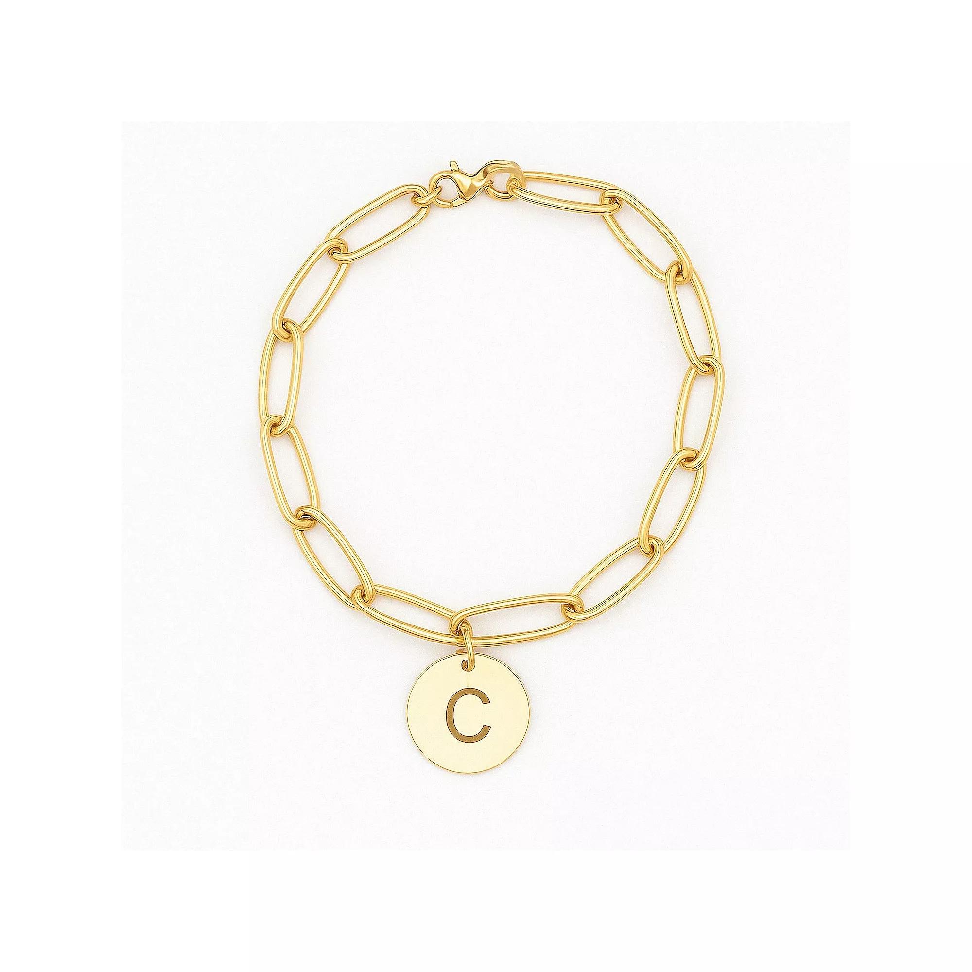 Celebrate your individuality with this Meshmerise 18K gold over silver initial disc link bracelet, crafted with a sleek, polished finish. Click on this JEWELRY & WATCHES GUIDE to learn about fit, styles, materials and more! Celebrate your individuality with this Meshmerise 18K gold over silver initial disc link bracelet, crafted with a sleek, polished finish. Click on this JEWELRY & WATCHES GUIDE to learn about fit, styles, materials and more! FEATURES Bracelet length: 7 in. Clasp: lobster-claw Nickel free Metal: sterling silver Plating: 18k gold Finish: polished Packaging: boxed Size: 6-7" ADJ. Color: Gold Tone C. Gender: female. Age Group: adult. Material: Gold Plate.