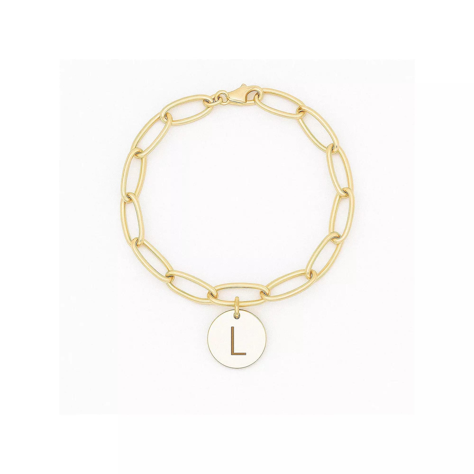 Celebrate your individuality with this Meshmerise 18K gold over silver initial disc link bracelet, crafted with a sleek, polished finish. Click on this JEWELRY & WATCHES GUIDE to learn about fit, styles, materials and more! Celebrate your individuality with this Meshmerise 18K gold over silver initial disc link bracelet, crafted with a sleek, polished finish. Click on this JEWELRY & WATCHES GUIDE to learn about fit, styles, materials and more! FEATURES Bracelet length: 7 in. Clasp: lobster-claw Nickel free Metal: sterling silver Plating: 18k gold Finish: polished Packaging: boxed Size: 6-7" ADJ. Color: Gold Tone L. Gender: female. Age Group: adult. Material: Gold Plate.