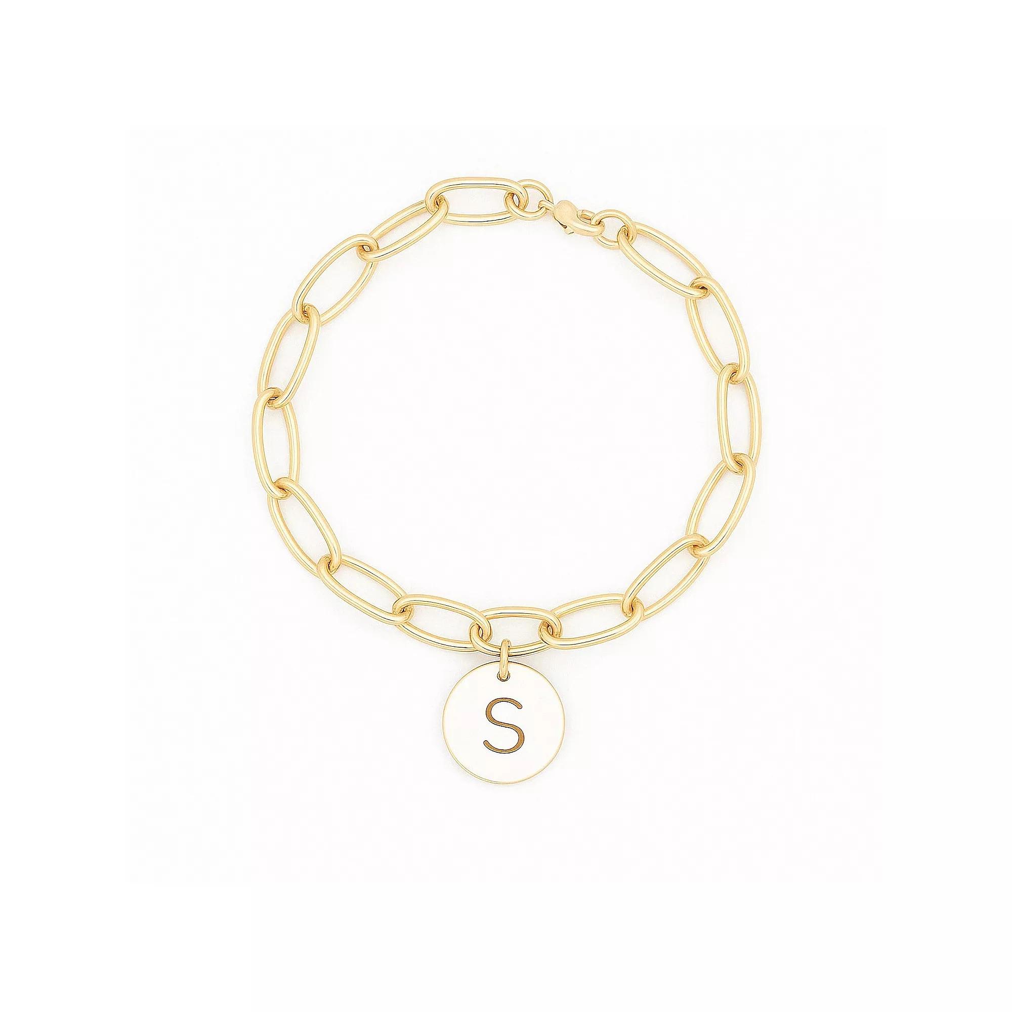 Celebrate your individuality with this Meshmerise 18K gold over silver initial disc link bracelet, crafted with a sleek, polished finish. Click on this JEWELRY & WATCHES GUIDE to learn about fit, styles, materials and more! Celebrate your individuality with this Meshmerise 18K gold over silver initial disc link bracelet, crafted with a sleek, polished finish. Click on this JEWELRY & WATCHES GUIDE to learn about fit, styles, materials and more! FEATURES Bracelet length: 7 in. Clasp: lobster-claw Nickel free Metal: sterling silver Plating: 18k gold Finish: polished Packaging: boxed Size: 6-7" ADJ. Color: Gold Tone S. Gender: female. Age Group: adult. Material: Gold Plate.