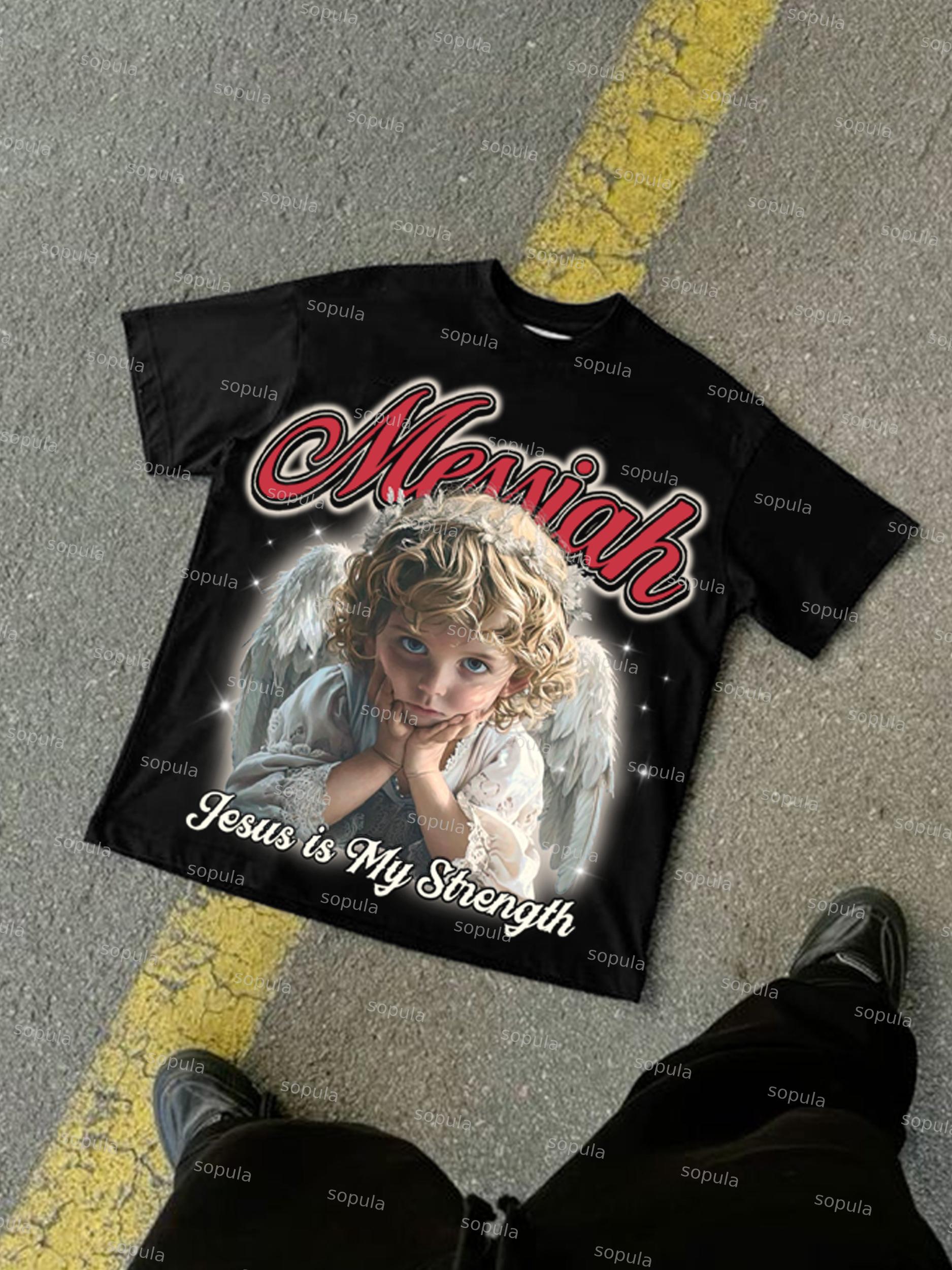 SPU: CP-234911-WJY Fabric: 100% Cotton Fabric Weight: 180g Pattern: Messiah Jesus Is My Strength Process: Printed Gender: Women,Men Season: Summer Size Range: S-3XL Color: Black,White,Apricot Print Position: Front,Back
