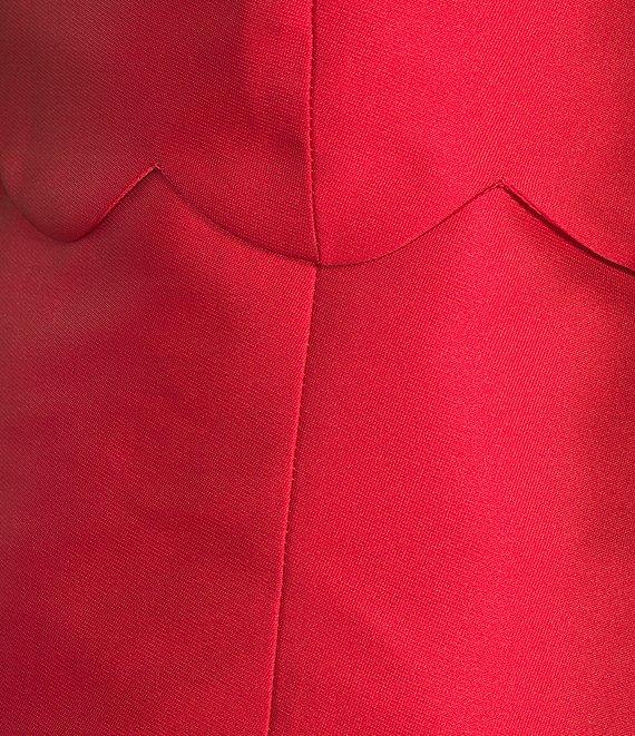 From Mestiza, this dress features: Dupioni fabrication Convertible to a top Halter neckline Bow detail Sleeveless Scallop trim Back zip closure Approx. 33" dress length; 17.5" top length Polyester/silk Hand wash Imported.