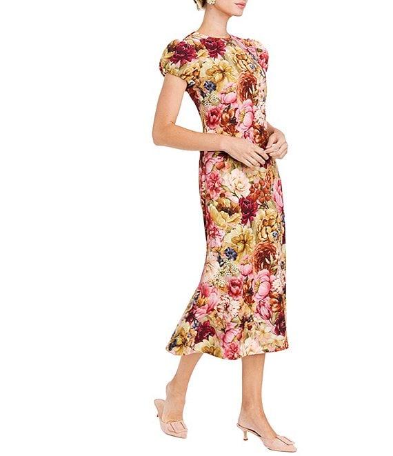 Mestiza New York Perla Stretch Crepe Floral Print Round Neck Short Sleeve Midi Dress