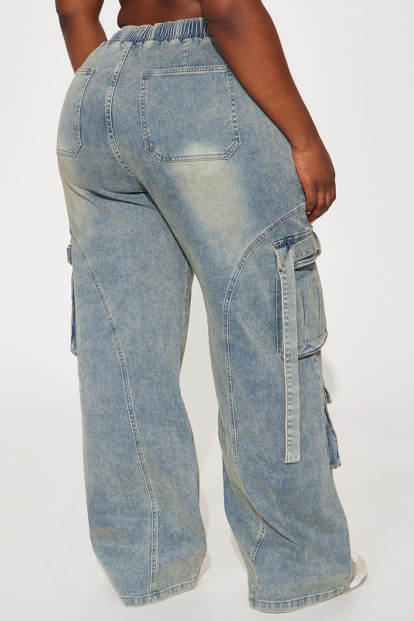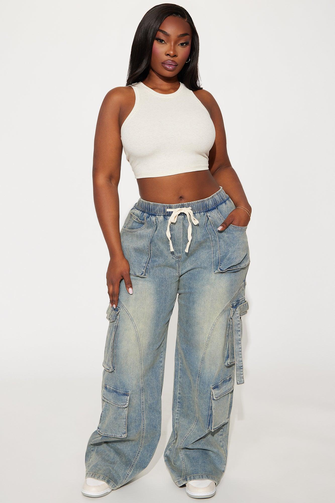 Available In Black Wash And Vintage Wash. Available In Black Wash And Vintage Wash. Wide Leg Jean Elastic Waistband Drawstring Cargo Pockets 11.5" Rise Low Stretch Disclaimer: Due To The Specialized Wash Process, Each Garment Is Unique. 82% Cotton 11% Viscose 6% Polyester 1% Spandex Imported California Proposition 65WARNING: Cancer and Reproductive Harm - www.P65Warnings.ca.gov.