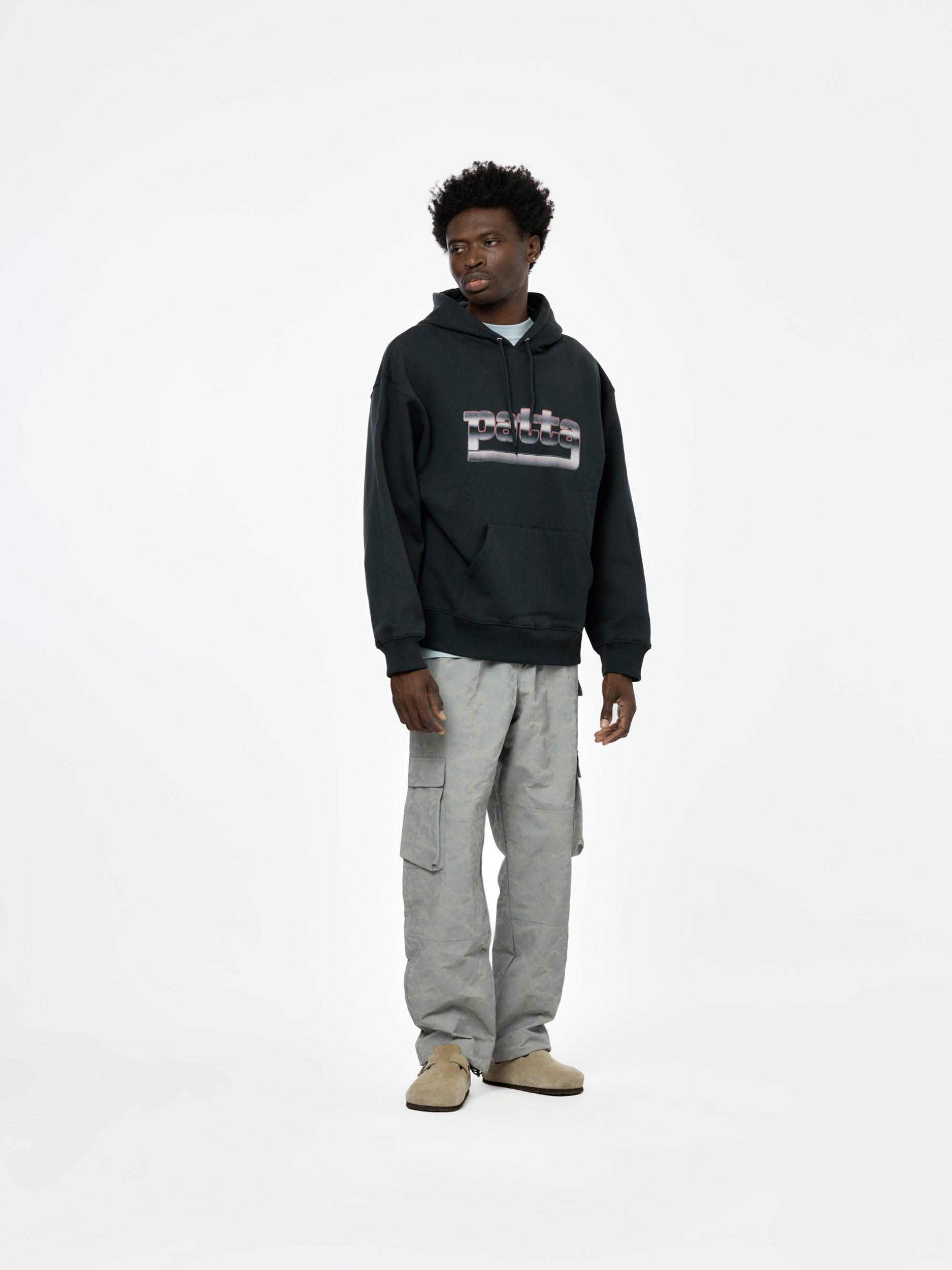 The Patta Metal Boxy Hooded Sweater is a premium level hoodie with a relaxed fit and dropped shoulders. Coming in 400gsm soft brushed back sweat in 100% Cotton. Features a kangaroo pocket, ribbed bottom hem with cuffs and a drawstring hoodie. The front of the piece sees a plastisol printed Patta Metal artwork.
