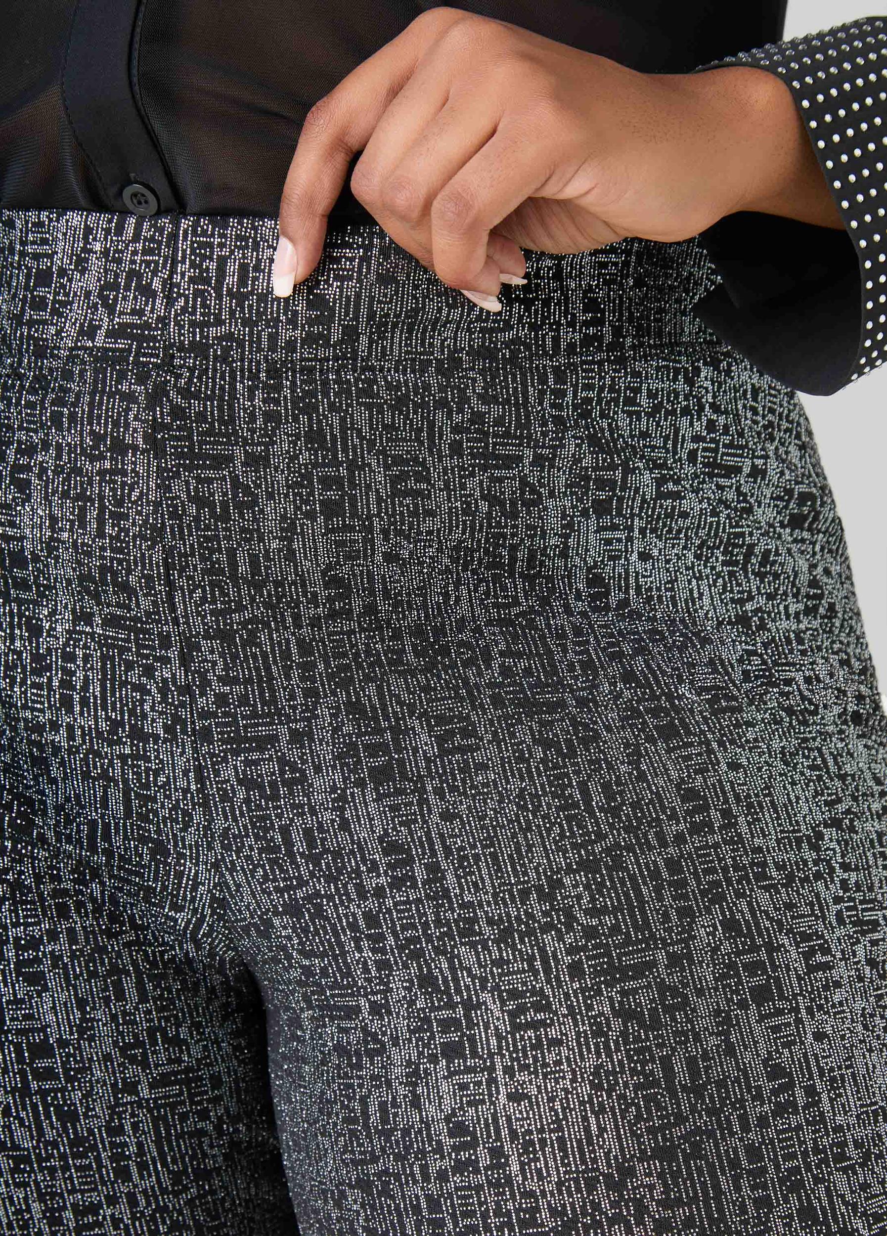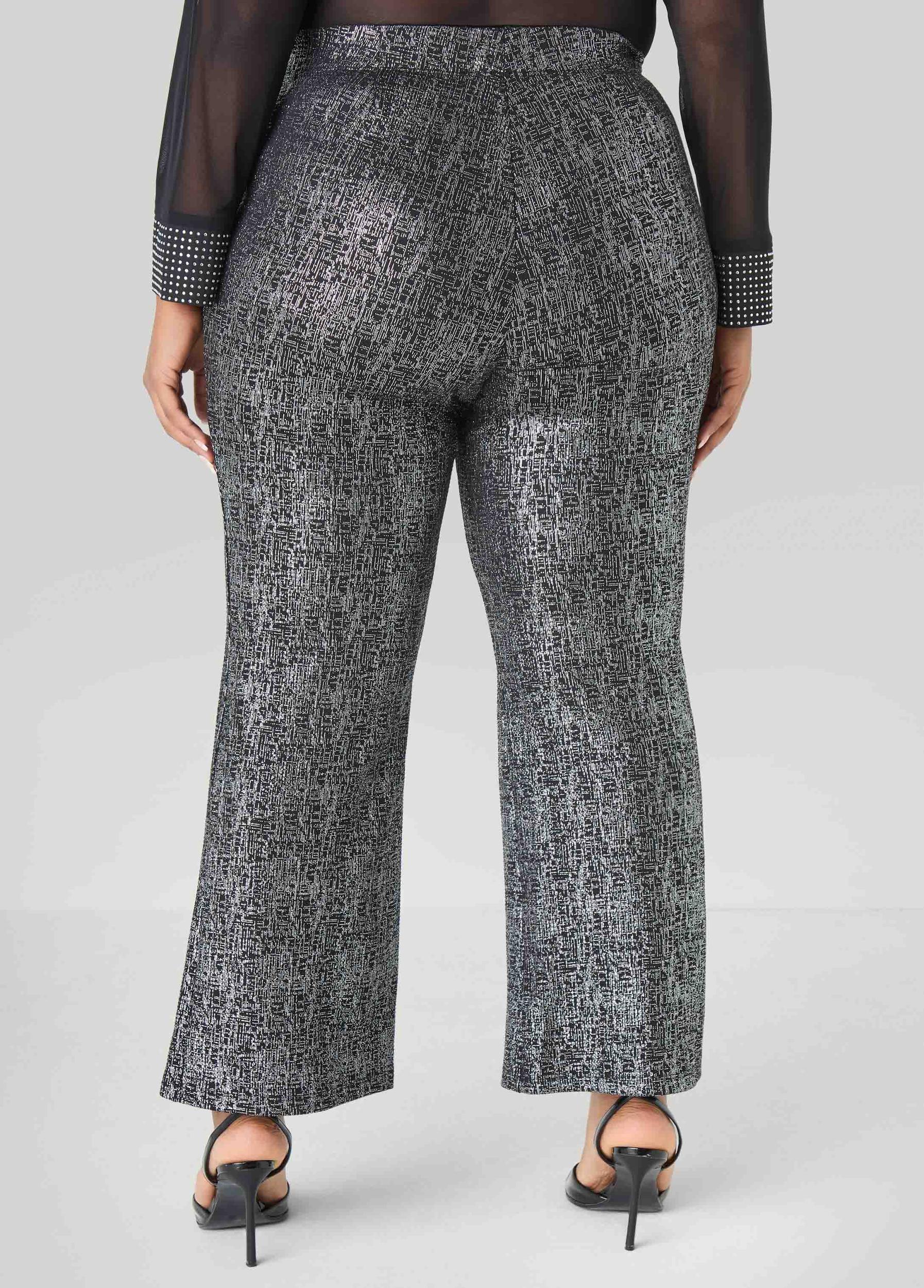Shimmer and comfort come through strong in these high-rise wide-leg pants with metallic threading that catches the light just right.