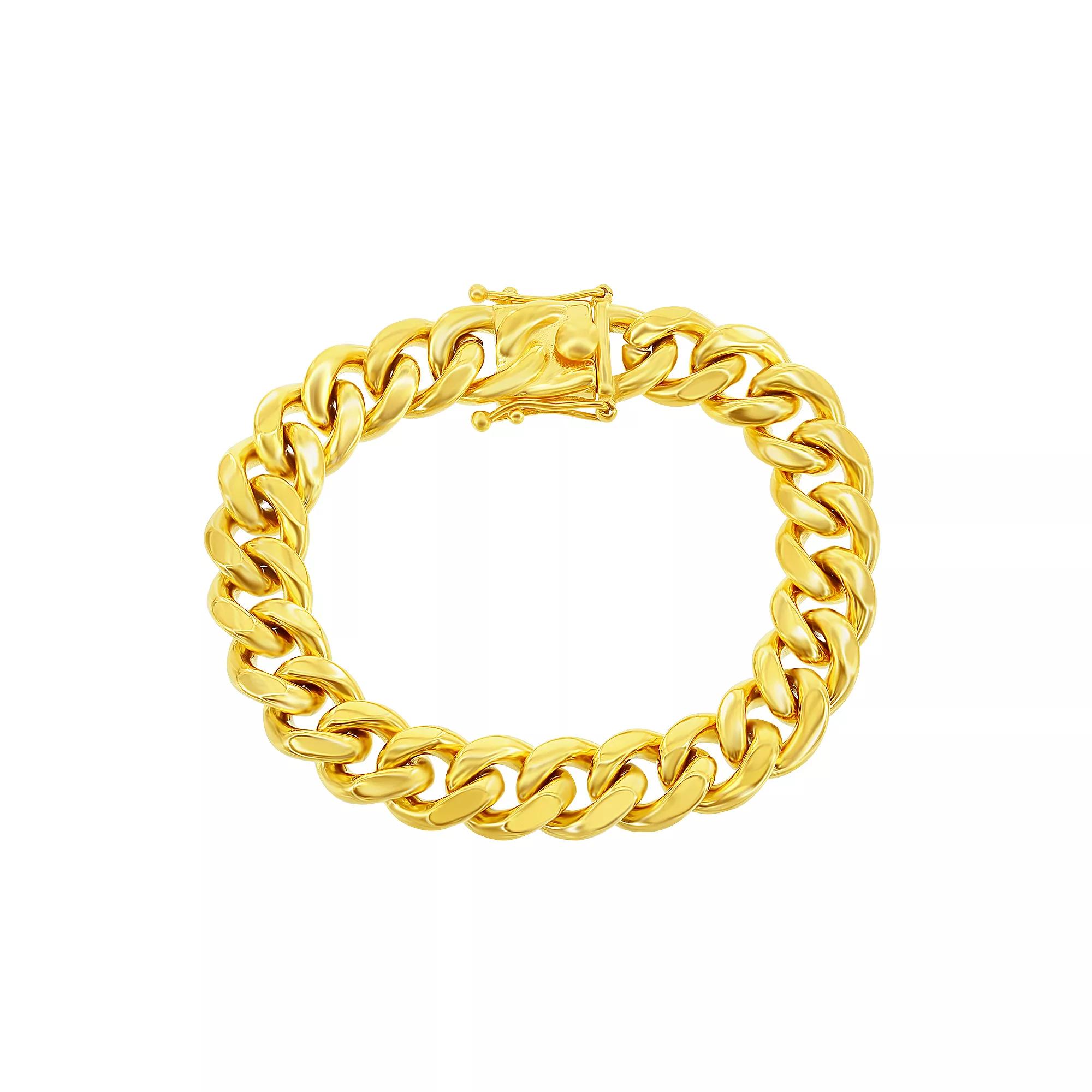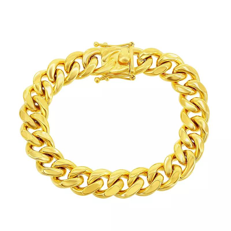 Finish off your outfit with this Metallo stainless steel 14mm Miami Cuban bracelet. Click on this JEWELRY & WATCHES GUIDE to learn about fit, styles, materials and more! Finish off your outfit with this Metallo stainless steel 14mm Miami Cuban bracelet. Click on this JEWELRY & WATCHES GUIDE to learn about fit, styles, materials and more! FEATURES Chain type: Cuban Length: 8.5 in. Chain width: 14mm Clasp: box Nickel free Metal: stainless steel Plating: ion plated Finish: polished Packaging: boxed Imported Size: 8.5. Color: Yellow. Gender: male. Age Group: adult.