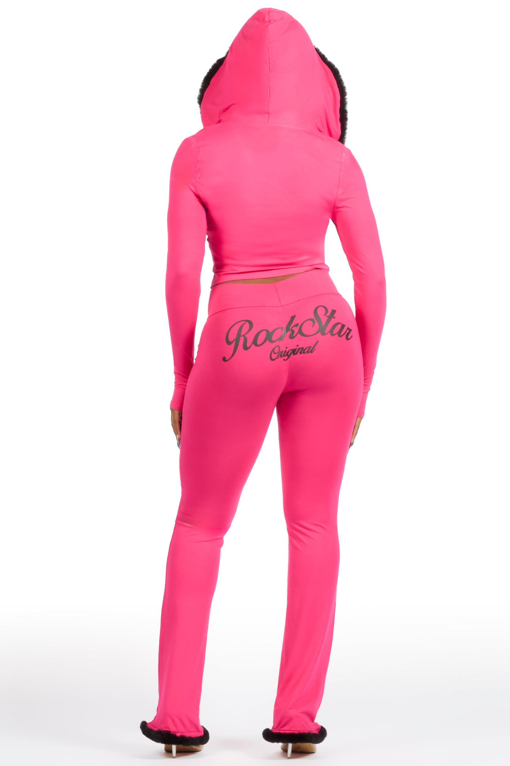 Metrie Hot Pink Lounge Track Set With Fur Trim Female