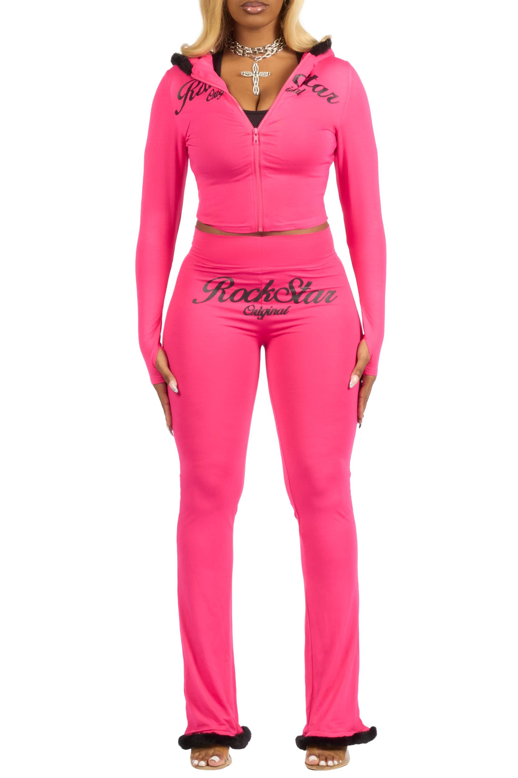 Metrie Hot Pink  Lounge Track Set With Fur Trim Female Product Image