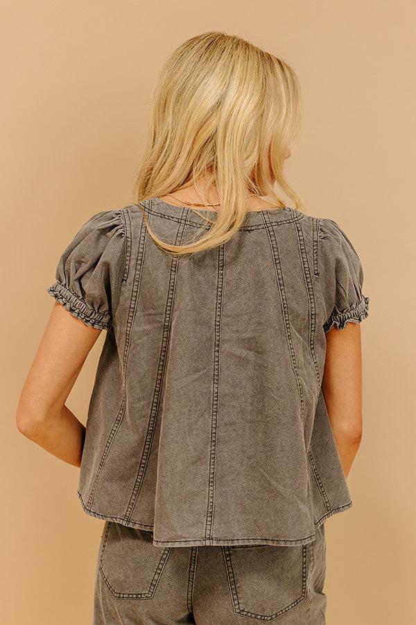 - Bring laid-back sweetness to your look with this denim top! Puff sleeves add a trendy touch to this easygoing essential, perfect for casual style moments.