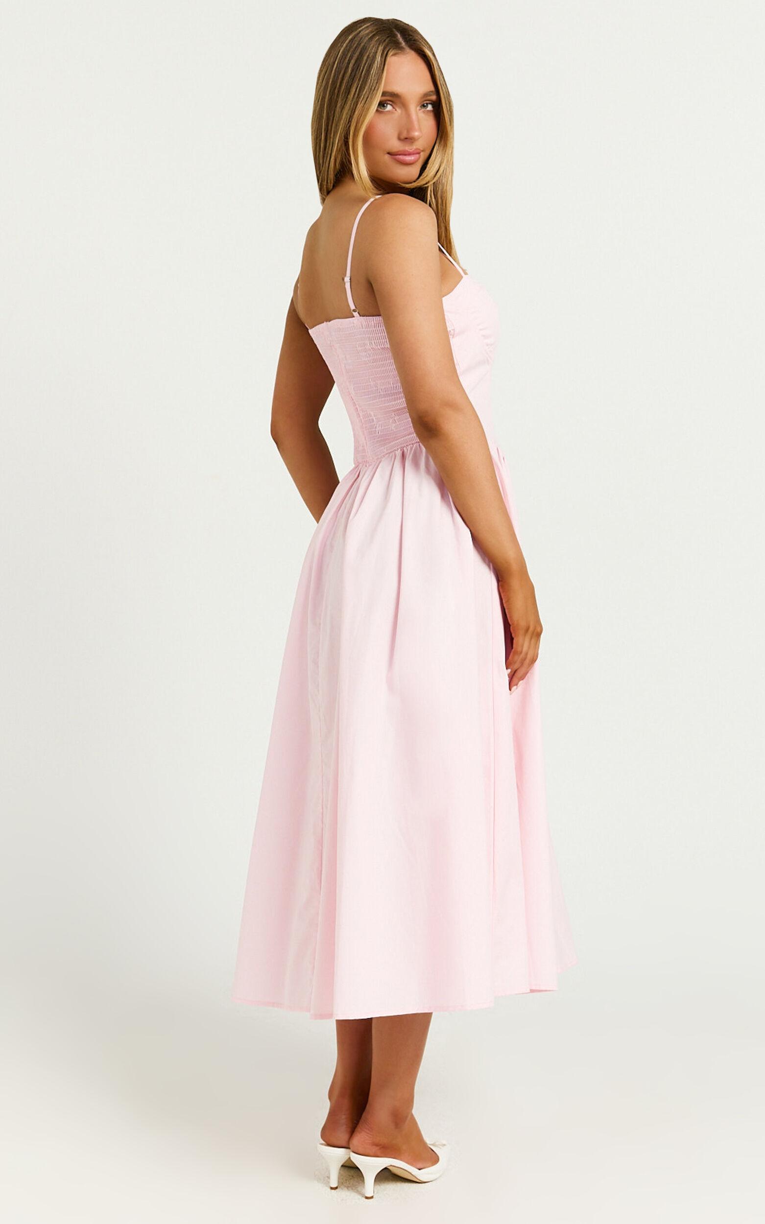 Step into style with our Mhissa Midi Dress - a dreamy piece that effortlessly blends timeless elegance with a playful, modern twist. This beautiful fit & flare dress, characterized by its captivating pink hue and flattering sweetheart neckline, promises to make every moment feel like a party day.Product Details:Fit & Flare DressCotton PolyesterSweetheart NecklineSleevelessMidi LengthParty ReadyMaterial and CarePolyesterLow / No stretch