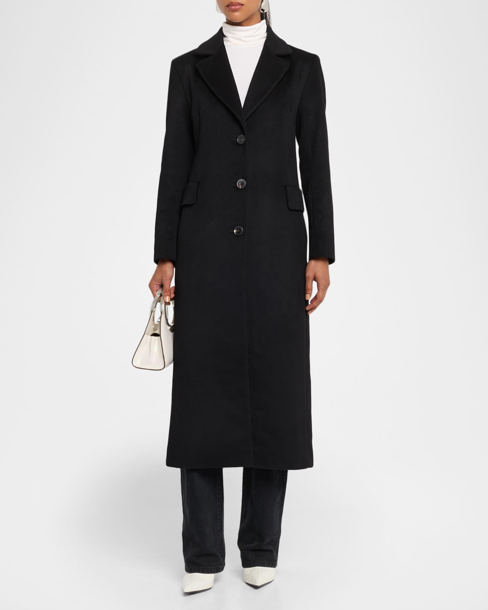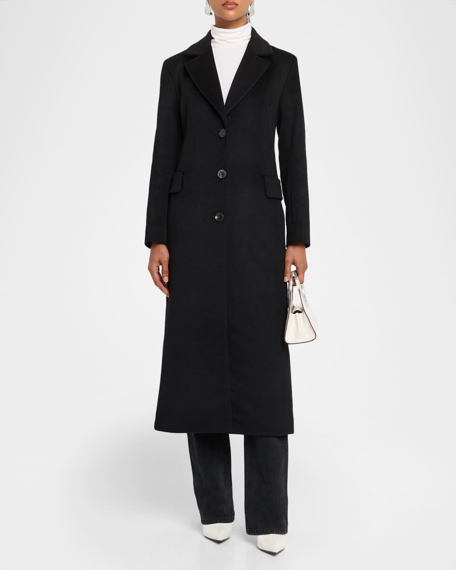 Made in America, the "Mia" maxi coat by Fleurette is crafted from luxurious cashmere and features a single-breasted front with handcrafted Italian buttons. Notch lapels Single-breasted front Long sleeves Side seam pockets with faux flaps Classic fit Waking vent Button-front Cashmere Lining: Acetate Dry clean Made in USA from imported materials