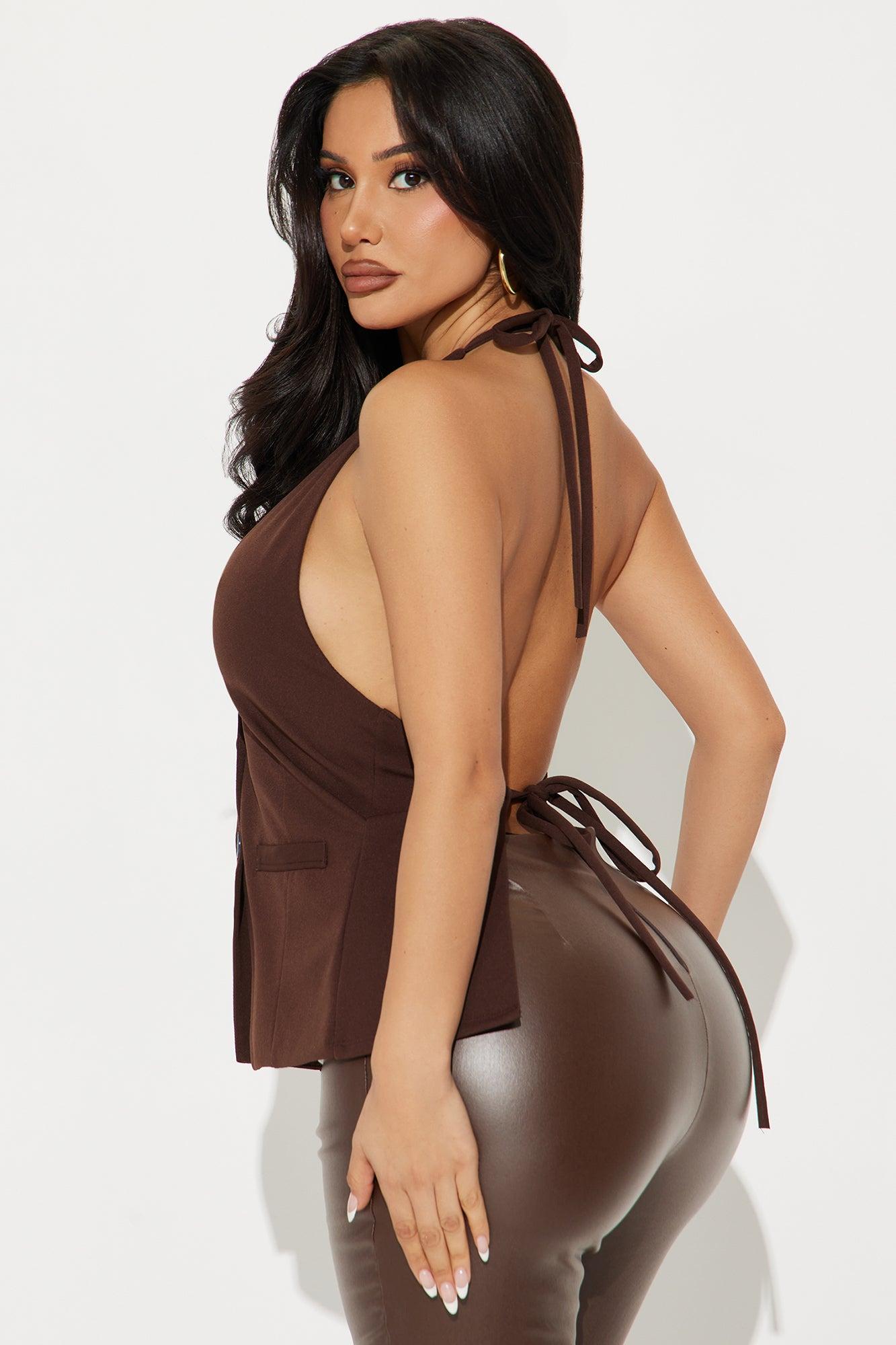 Mia Halter Vest Top - Chocolate