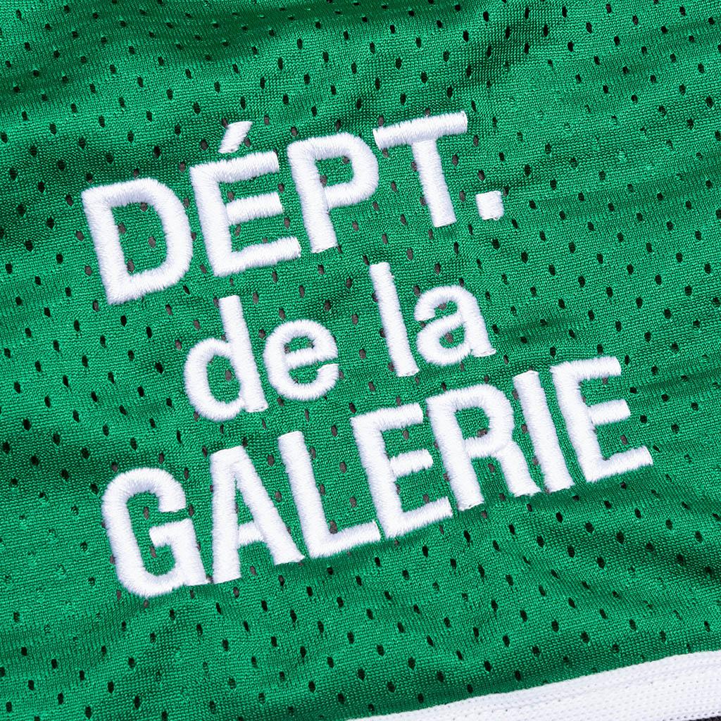 The Miami Court Short from Gallery Dept. draws inspiration from athletic roots. Crafted from polyester, the shorts have a mesh construction that provides breathability for all-day movement. Featuring an elastic waistband with drawstrings and pockets, the design is double lined for added comfort. Striped binding details and an embroidered logo complete the ensemble. 100% Polyester 8.25" inseam Double lined Elastic waistband with drawstring Front slip pockets Embroidered logo Striped binding details Style No: MCS-30032-KGBK MCS 30032 KELL