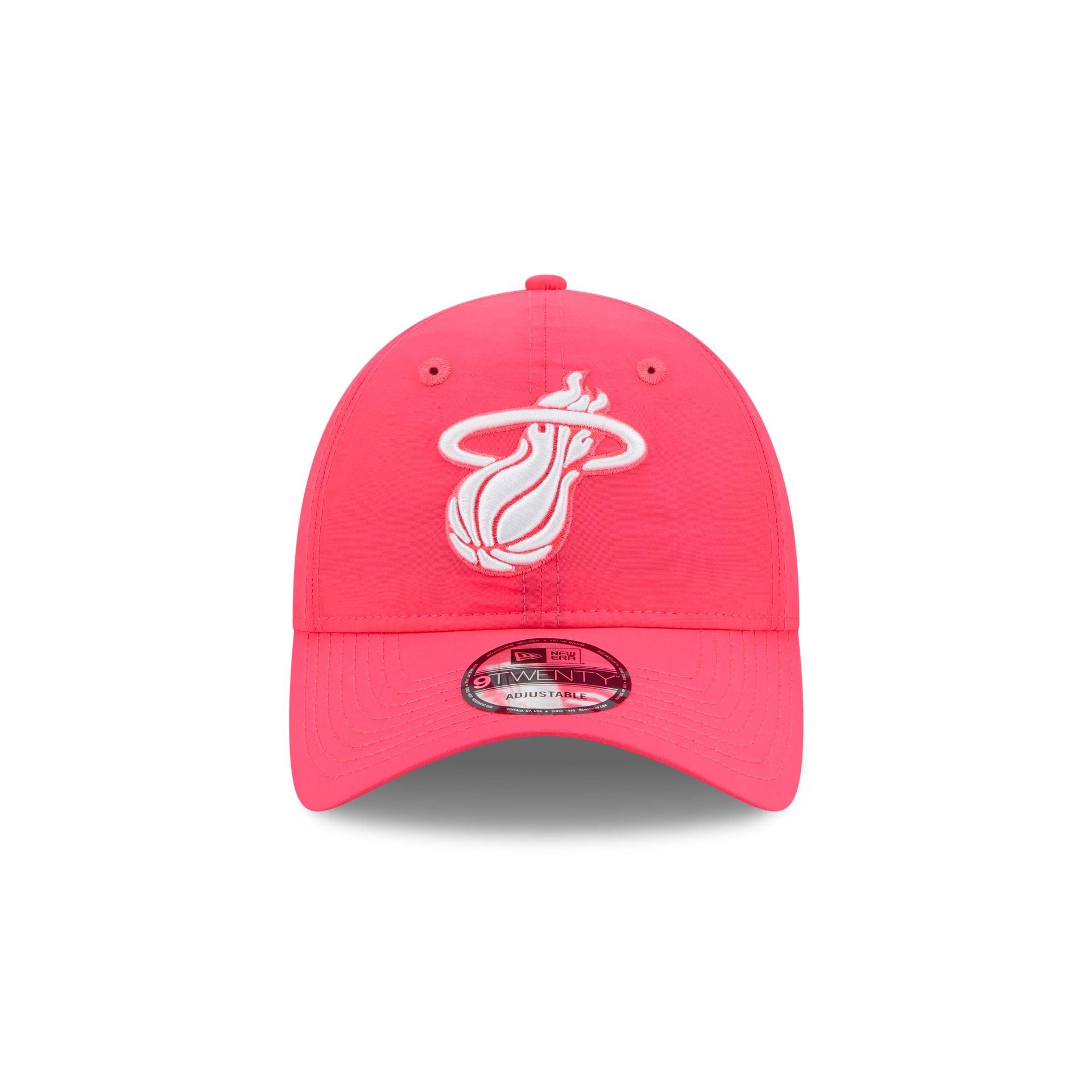 The Miami Heat Everyday Nylon Pink 9TWENTY Adjustable Cap features an embroidered Heat logo at the front panels with an adjustable strapback closure at the rear and a gray undervisor.