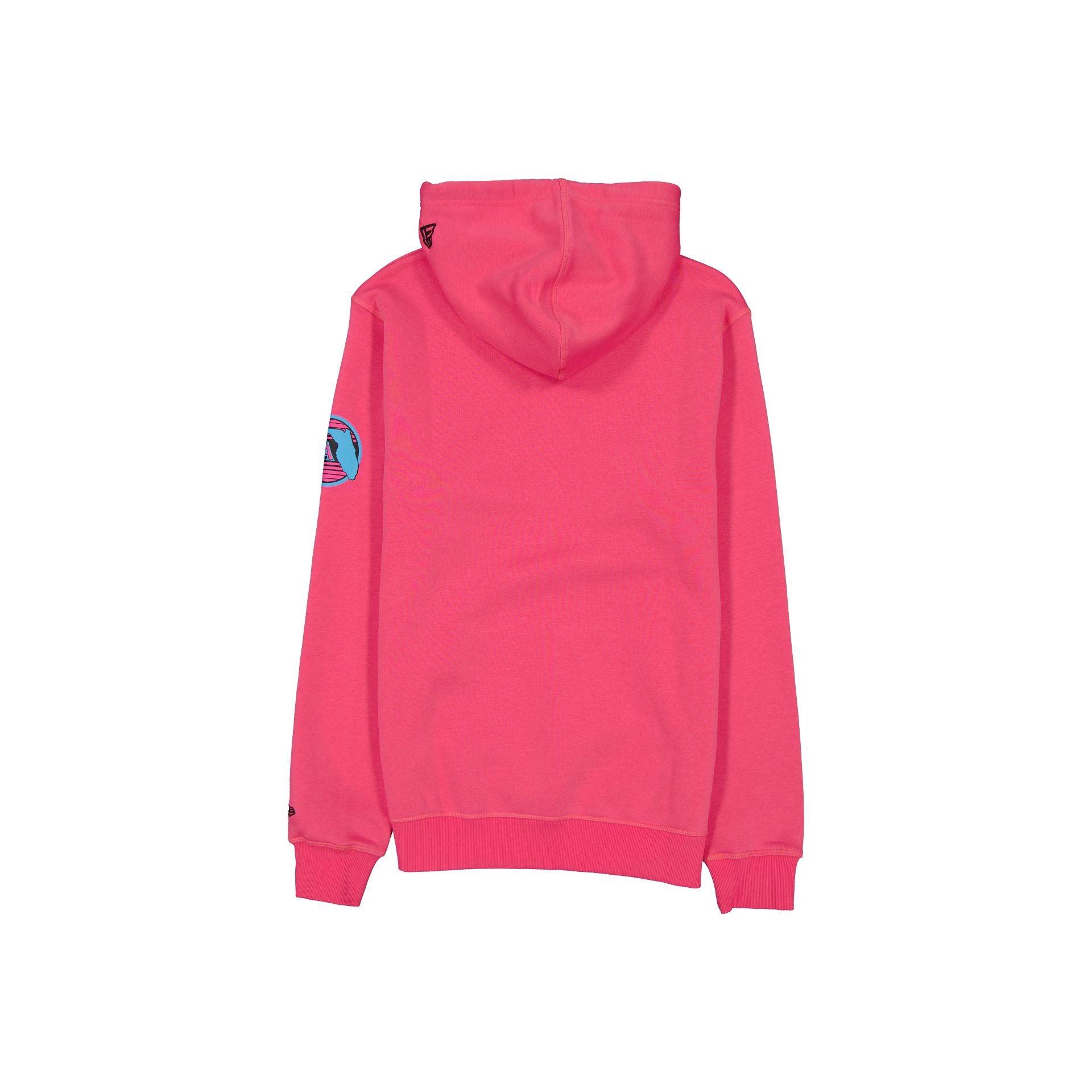 The Miami Marlins City Connect Pink Hoodie features a screen-printed Marlins logo at the front with an alternate team logo at the left-wear sleeve. Fabric: 80% Cotton, 20% Polyester