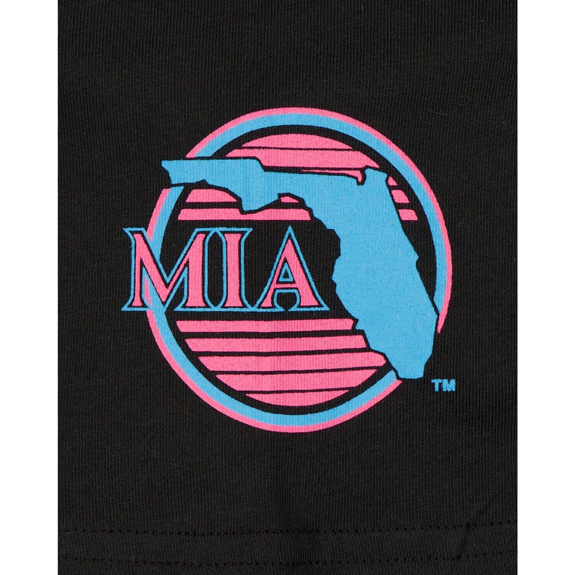 The Miami Marlins City Connect Women's Black T-Shirt features a screen-printed Marlins logo at the front with an alternate team logo at the left-wear sleeve.Fabric: 100% Cotton