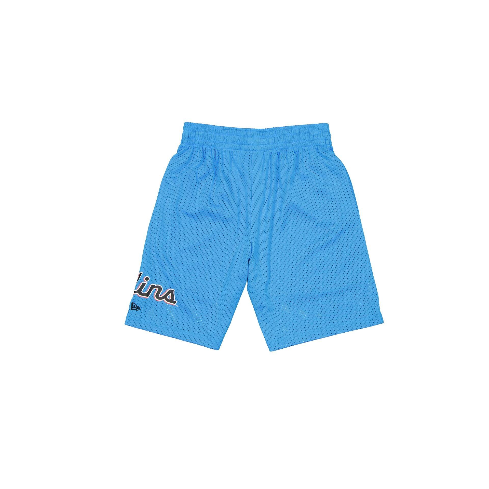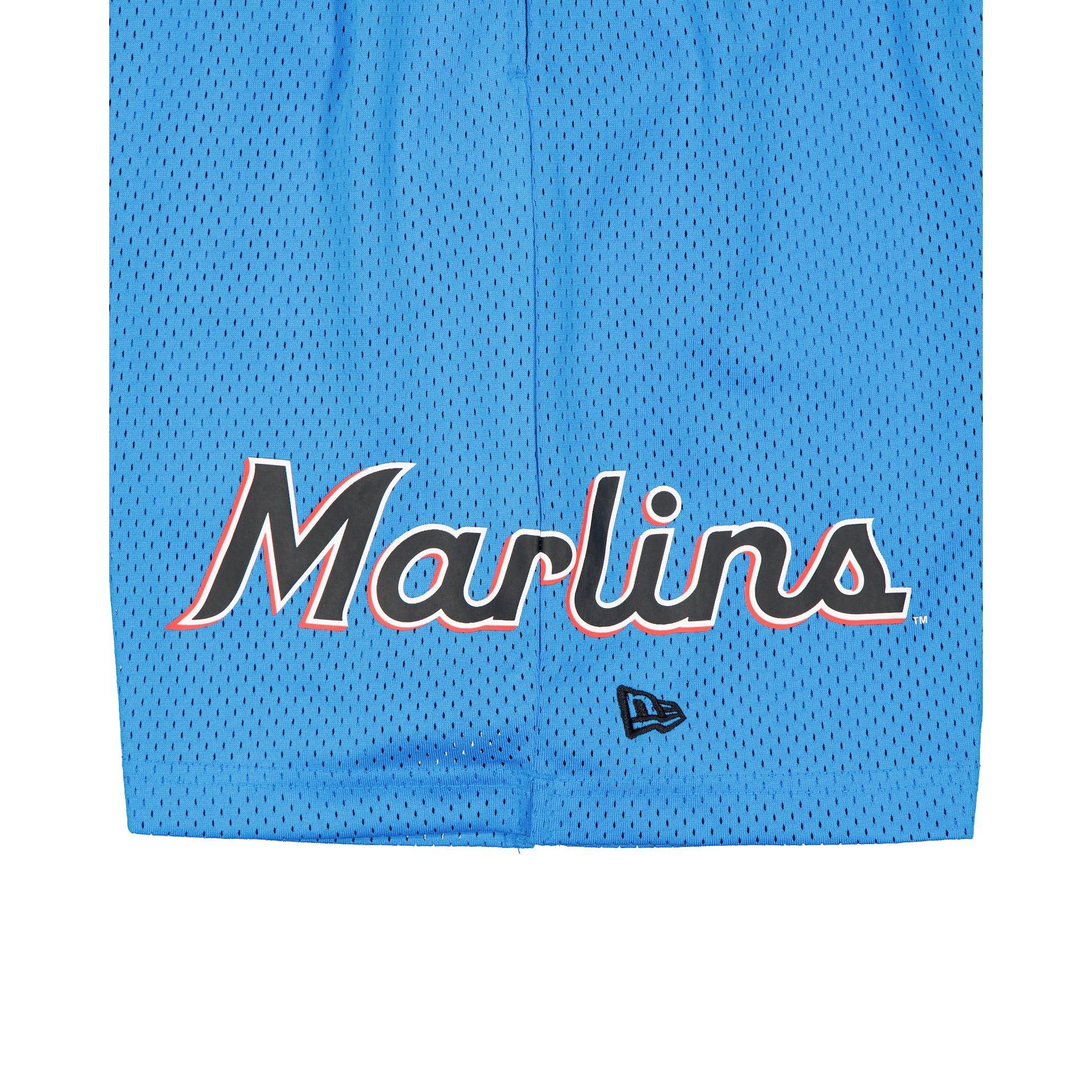 The Miami Marlins Summer Shorts feature a screen-printed Marlins logo at the right leg and team wordmark on the left. Fabric: 100% Polyester