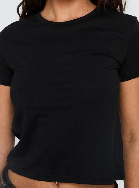 Basic crewneck top Capped sleeves, cropped Good stretch, unlined Princess Polly Lower Impact 60% reclaimed cotton 40% reclaimed polyester Cold hand wash