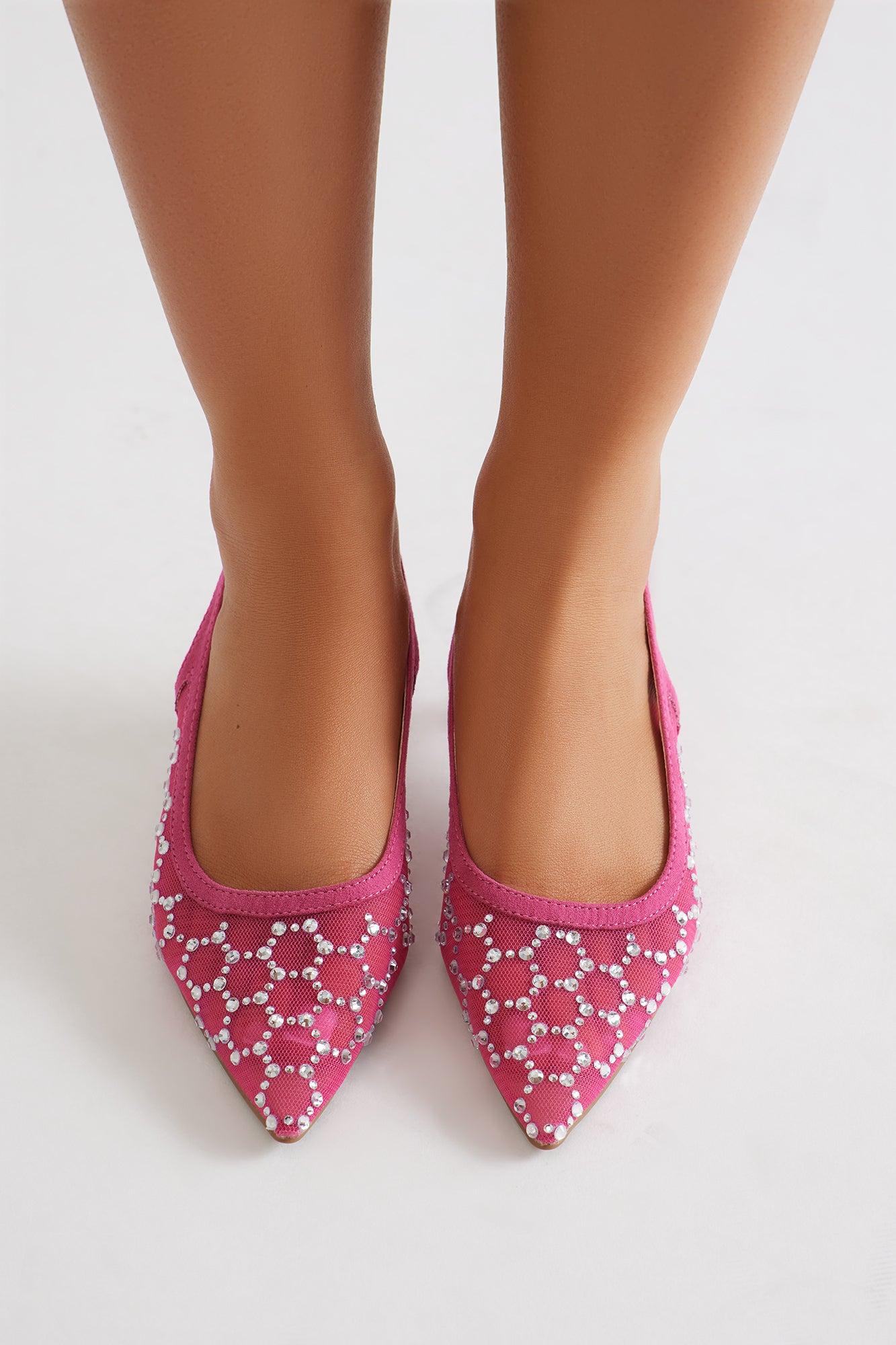 Mich Rhinestone Slingback Pumps - Fuchsia