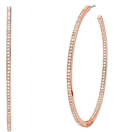 Michael Kors Crystal Rose Gold Inside Outside Pav Hoop Earrings