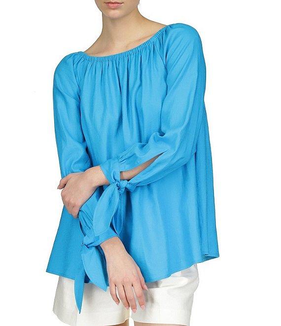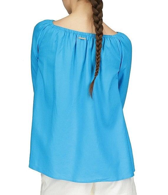 From Michael Kors, this blouse features: can be worn on/off-the-shoulder long sleeves tie cuff embellishmentpullover construction approx. 26.5" length linen/viscose dry clean Imported.