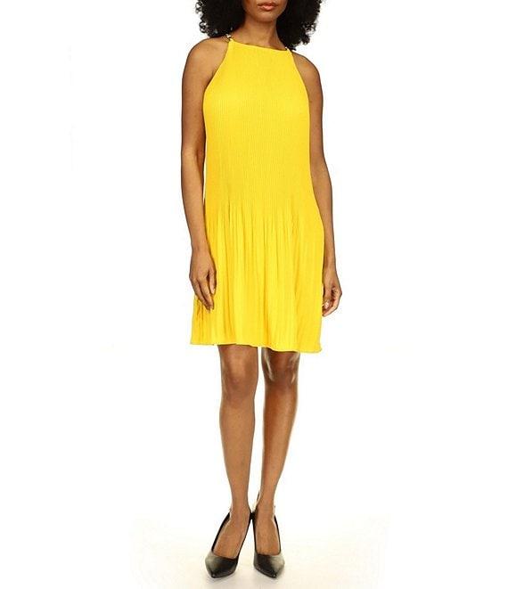 Michael Kors Pleated Halter Neckline Sleeveless Dress