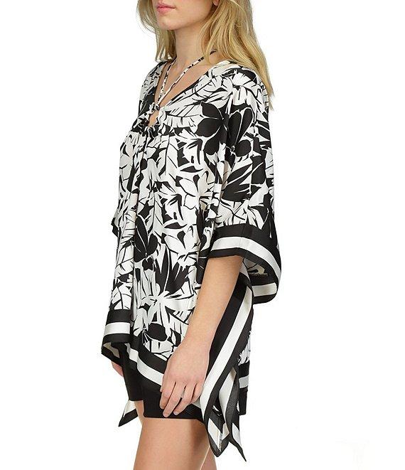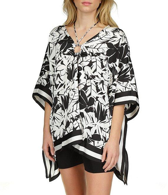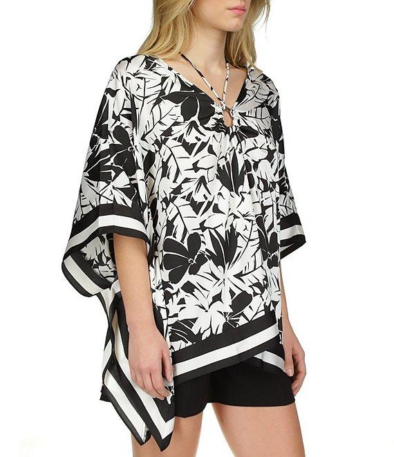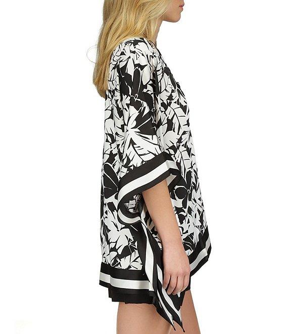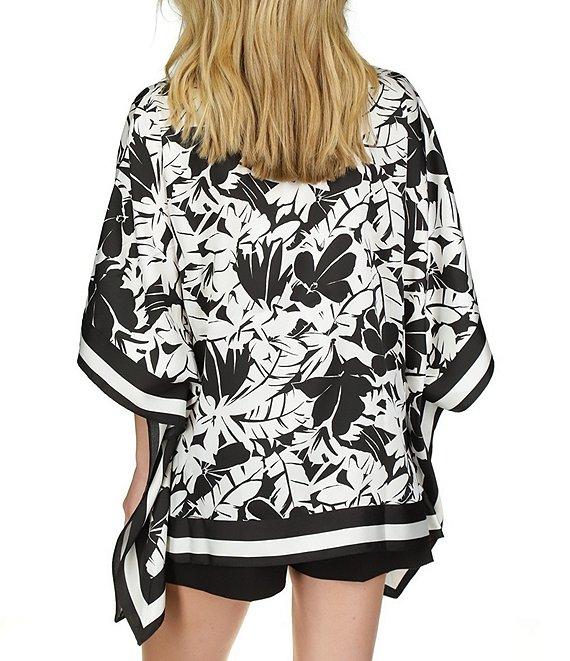 Michael Kors Printed V Neckline 3/4 Sleeve Poncho Top