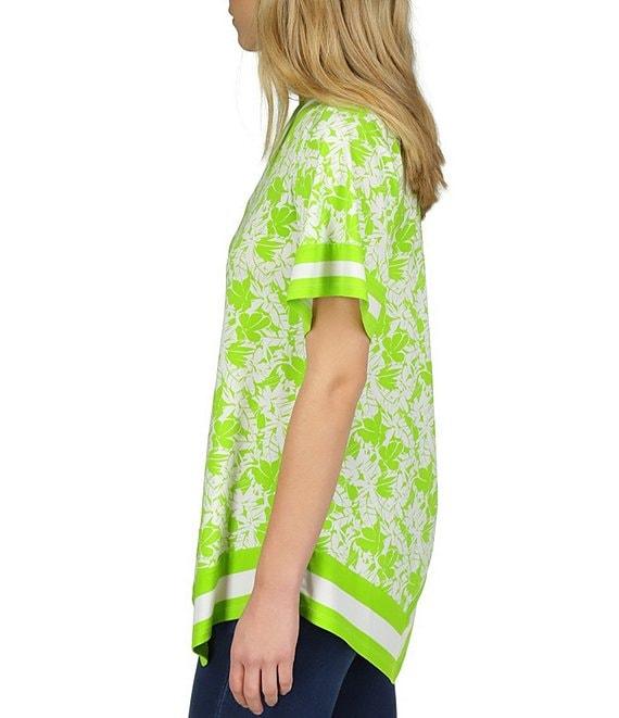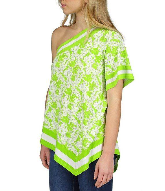 From Michael Kors, this blouse features: matte jersey fabrication palm print one shoulder neckline sleeveless pullover construction approx, 27" length polyester/elastane machine wash/dry flat Imported.