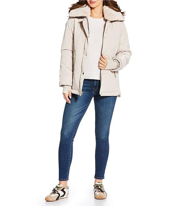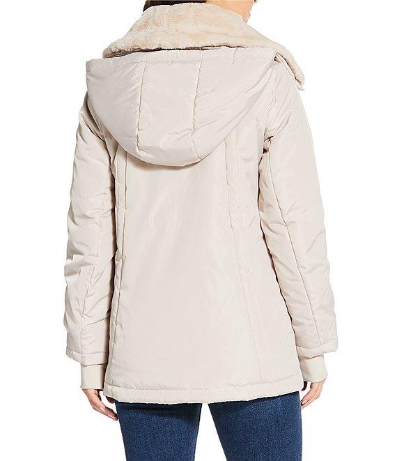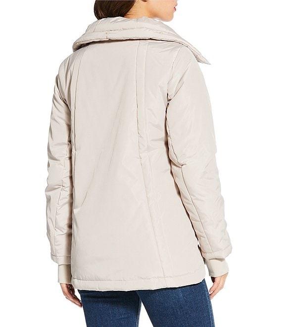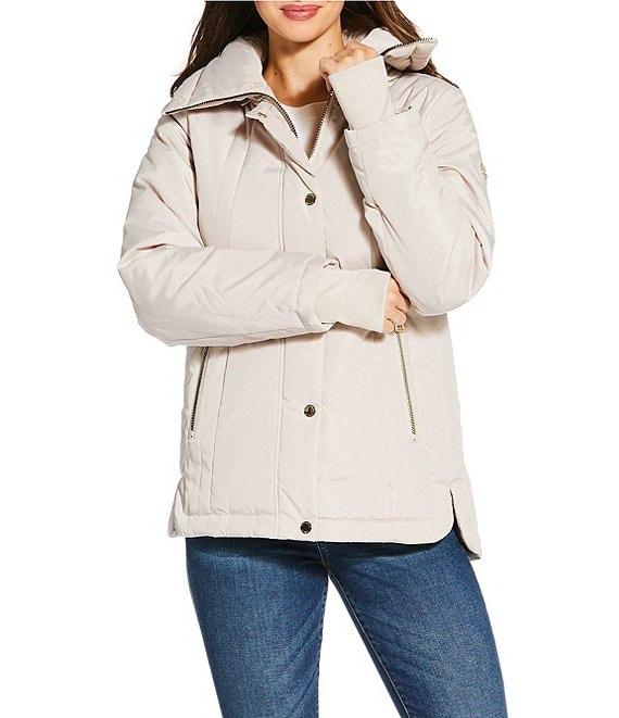 From MICHAEL Michael Kors, this jacket features: Quilted fabrication Active silhouette Stand collar neckline Long sleeves with cuff knitted trim Front zip pocket Removable collar Water resistant Mid weight Fitted fit Fully lined Straight hemline Snap front/zip closure Approx. 28.5" length Polyester Machine wash Imported.