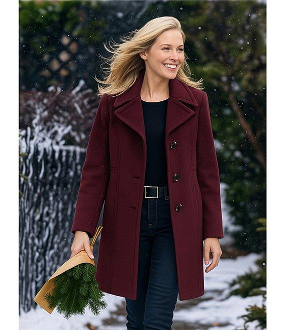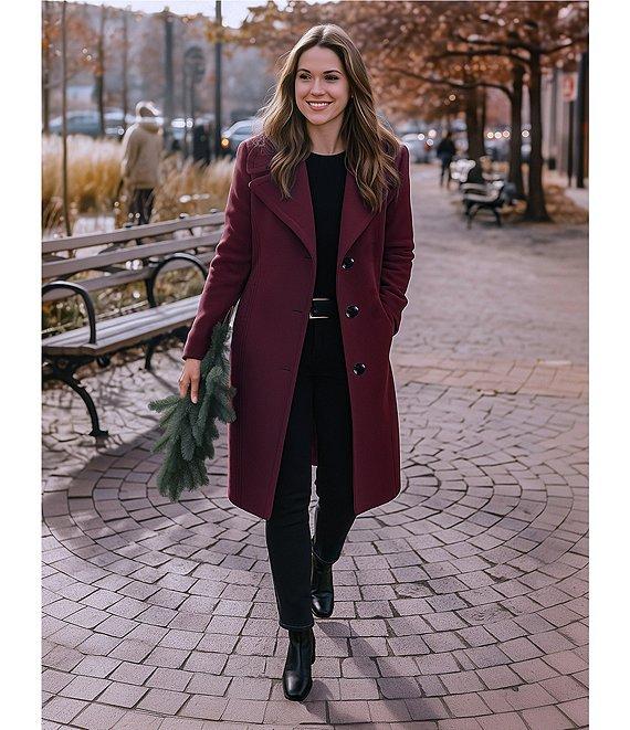 From MICHAEL Michael Kors, this coat features: Wool blend fabrication Single breasted silhouette Notch lapel neckline Long sleeves Front pockets Heavy weight Semi fitted fit Fully lined Straight hemline Button front closure Approx. 33" length Wool/polyester/other fibers; lining: polyester Dry clean Imported.