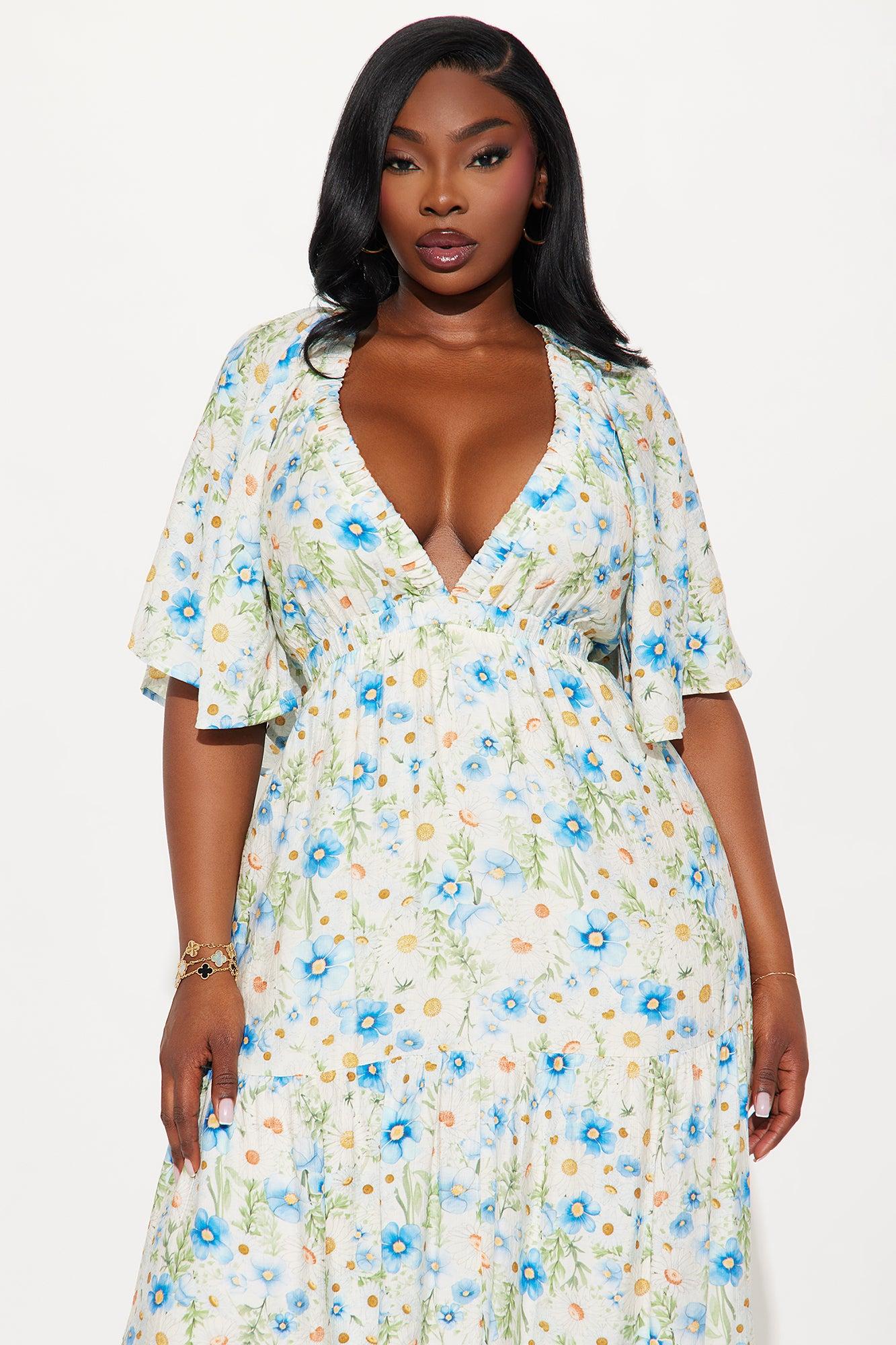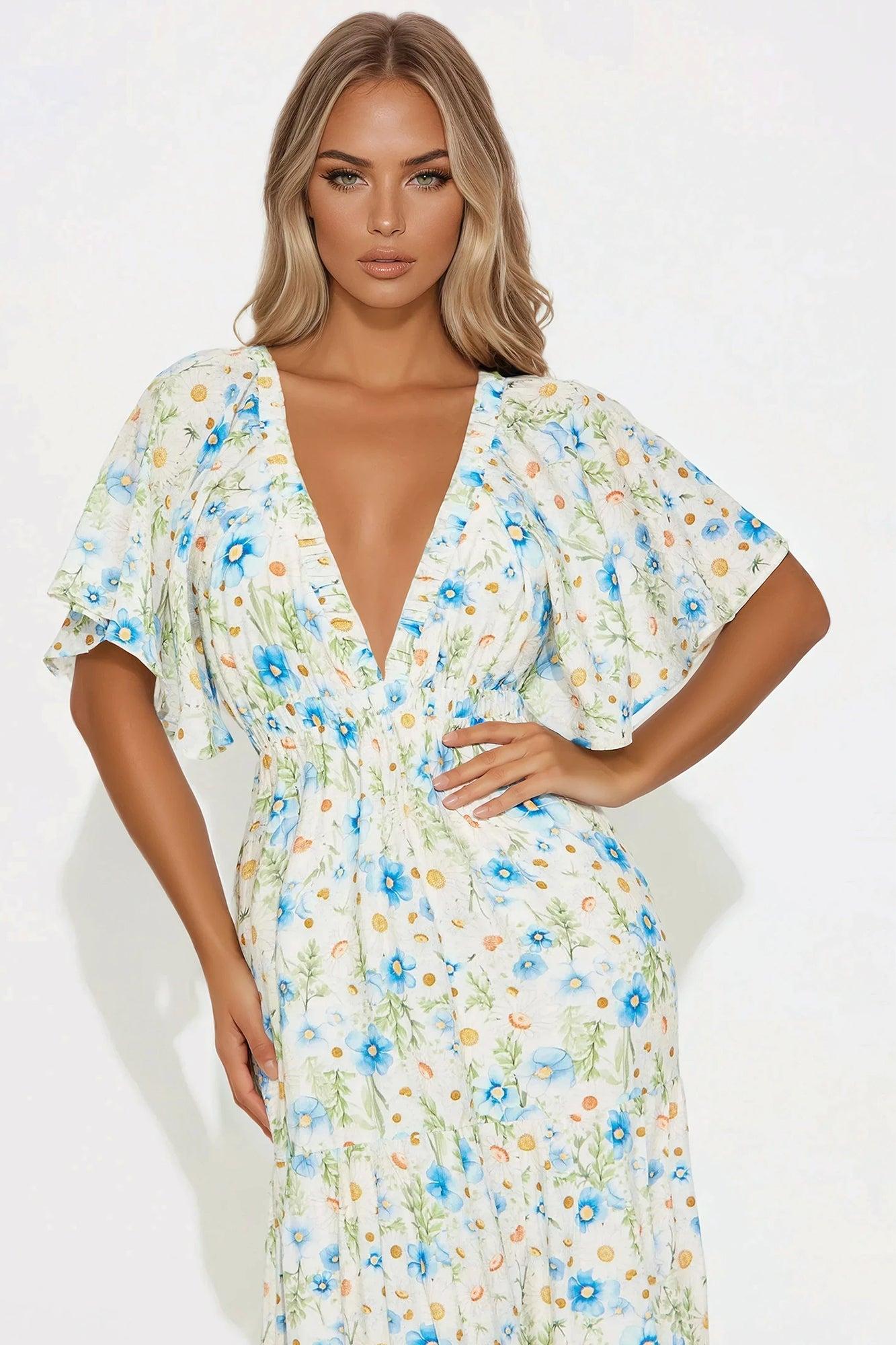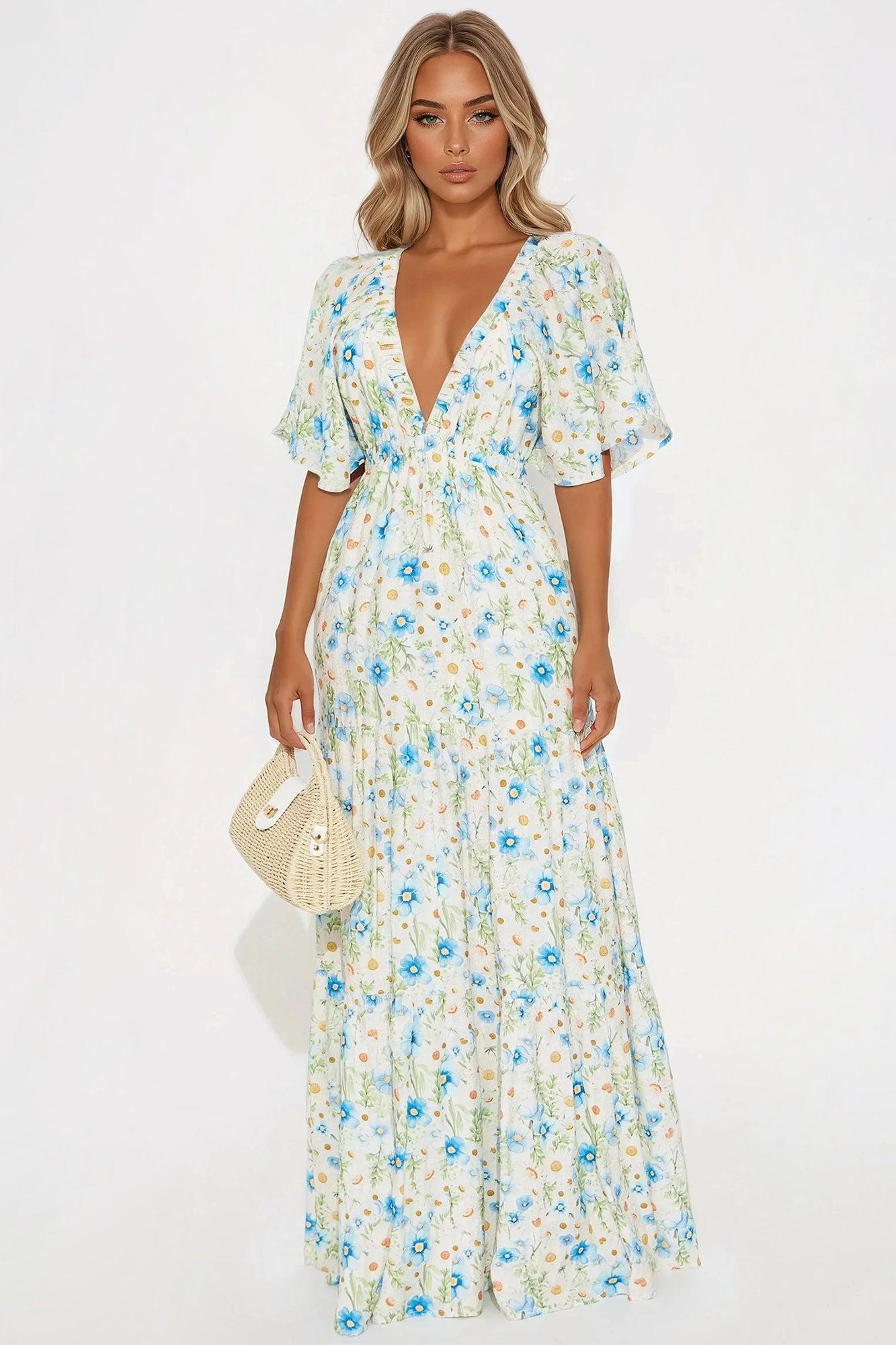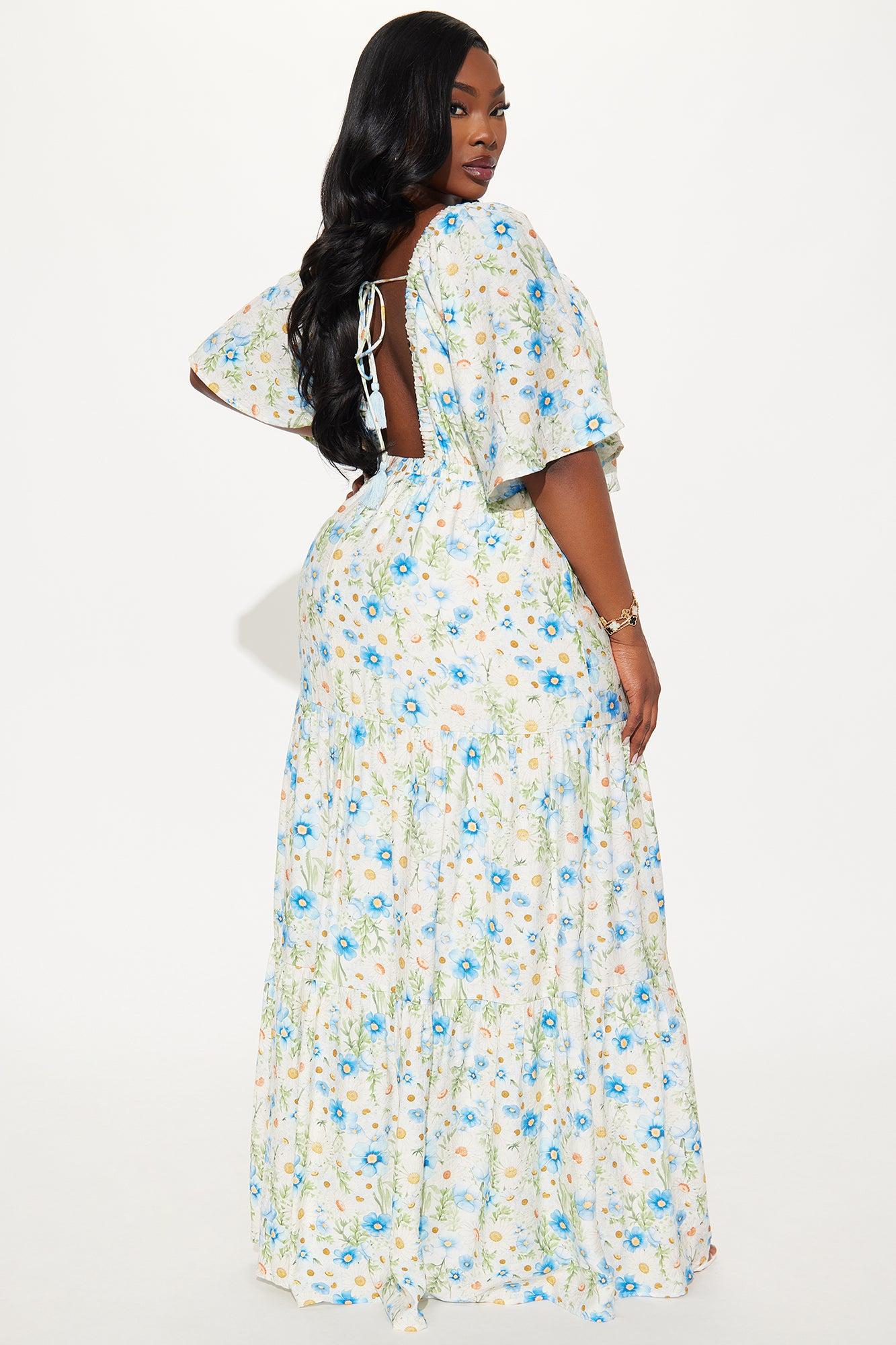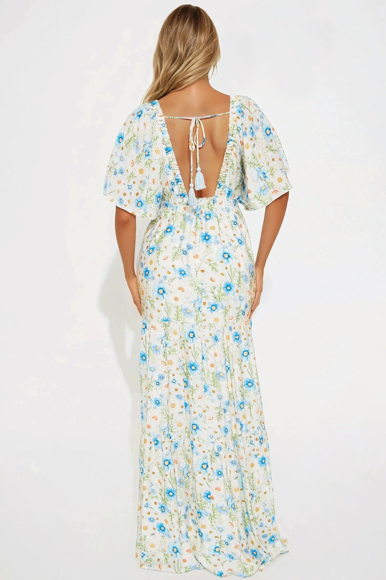 Michelle Floral Challis Maxi Dress - Blue/combo