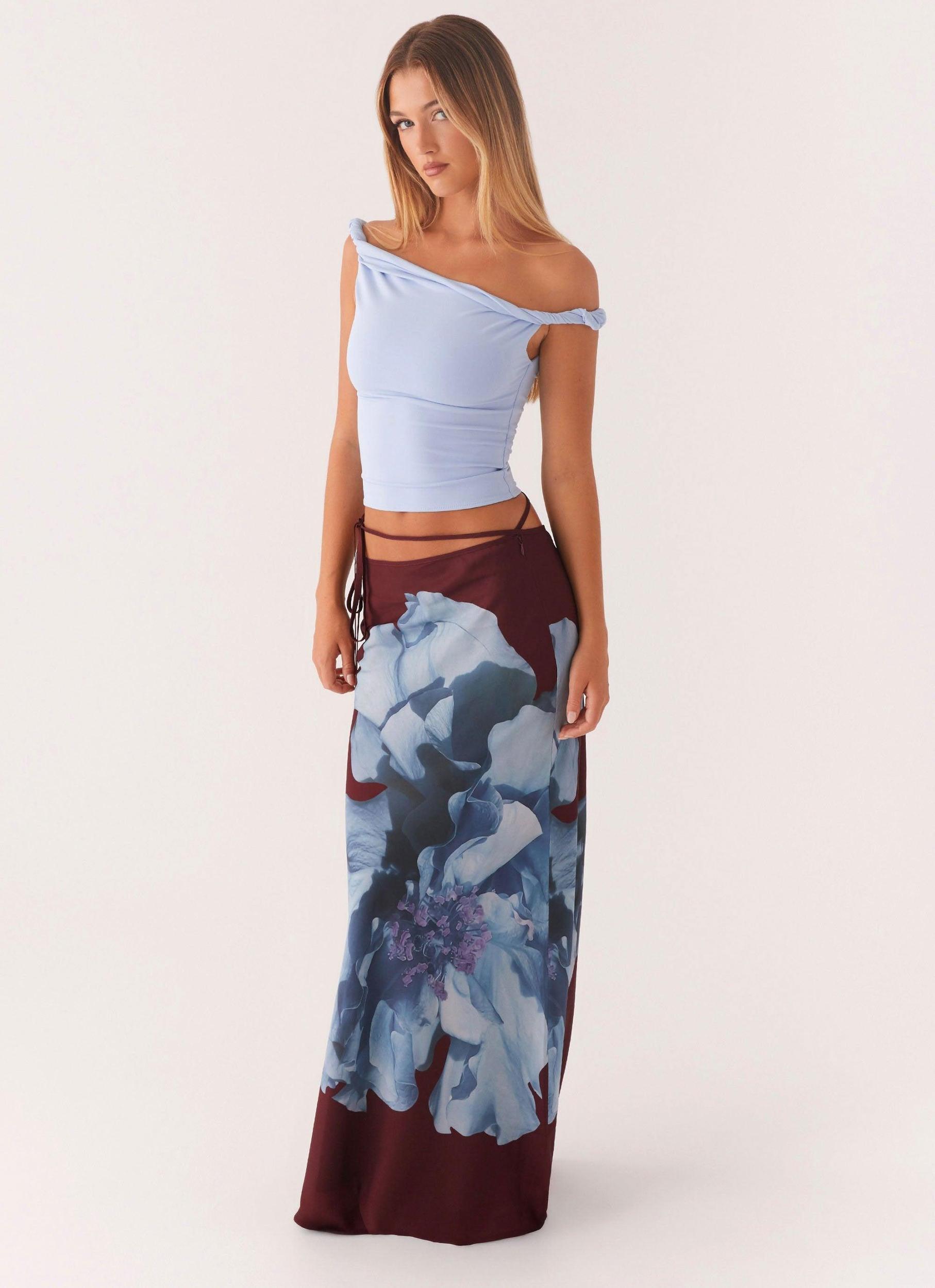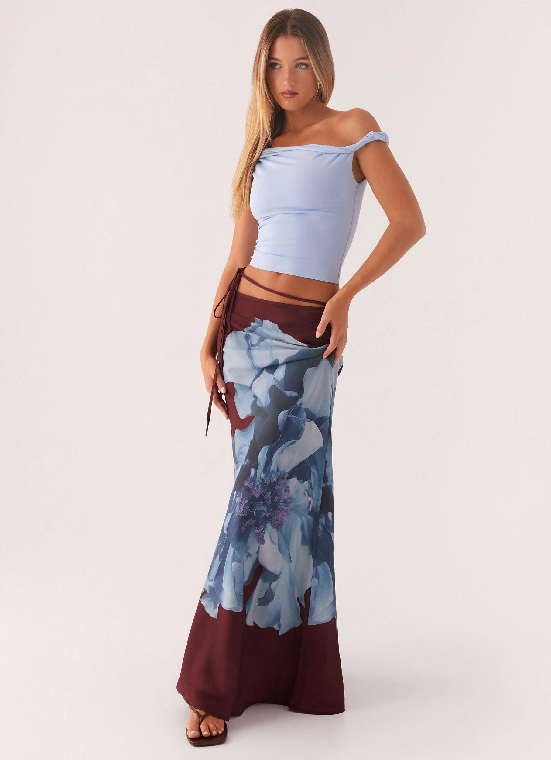 Peppermayo Exclusive The Michelle Maxi Skirt is an elegant and flowing piece, crafted from lightweight chiffon fabric for a breezy, feminine feel. The maxi length offers a graceful, elongated silhouette, while the lining ensures comfort and coverage - Exclusive print- Chiffon fabric- Maxi length- Lined- Tie detail around waist- Chiffon Size AU 8 / US 4 garment measurements: Waist: 76 cm / 29.9 inHip: 93 cm / 36.6 inLength: 102 cm / 40.2 inHem: 156 cm / 61.4 in Yasmin is 174cm and wearing a size AU 6 / and US 2