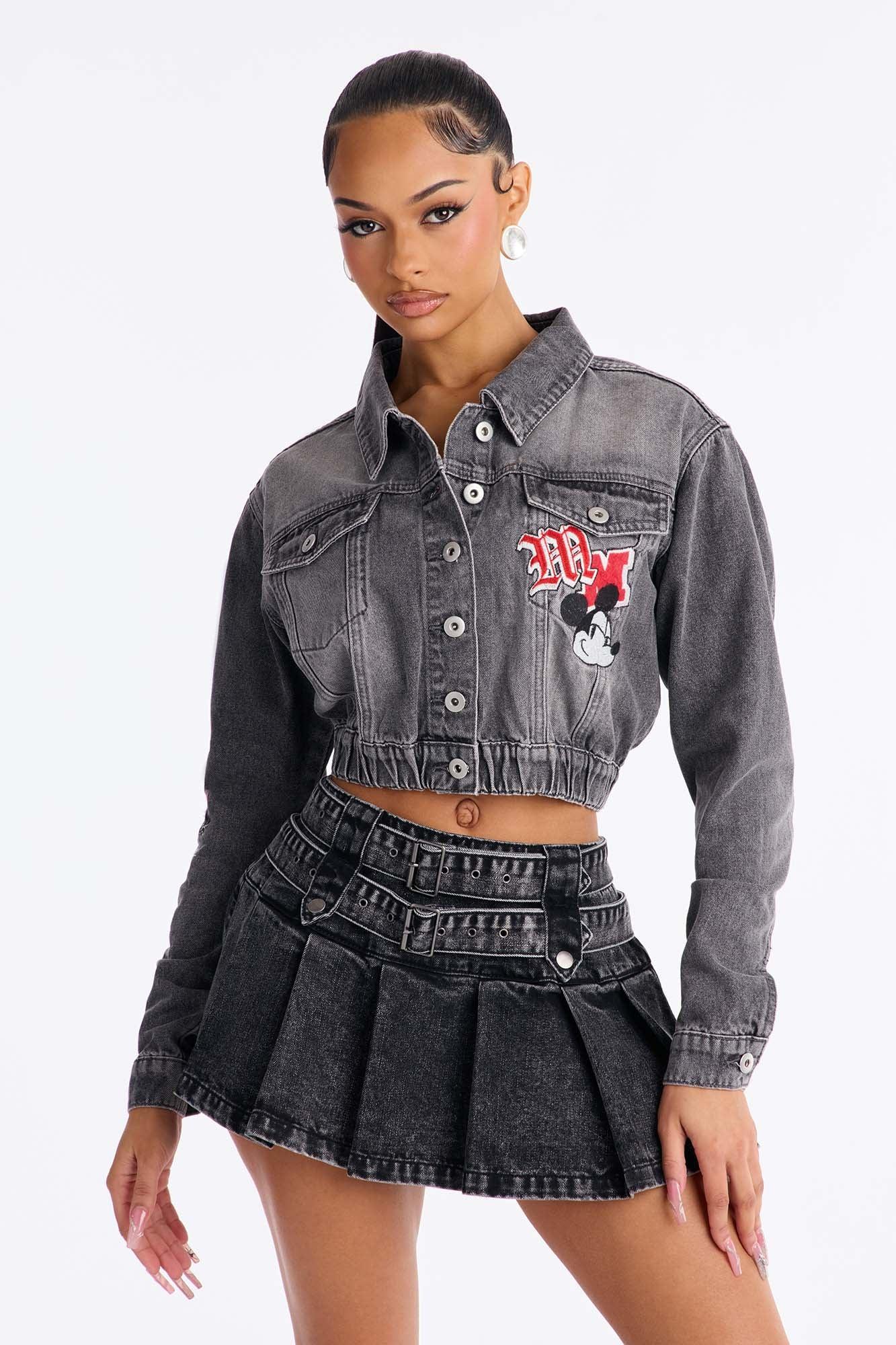 Mickey and Friends Embroidered Denim Jacket - Acid Wash Female