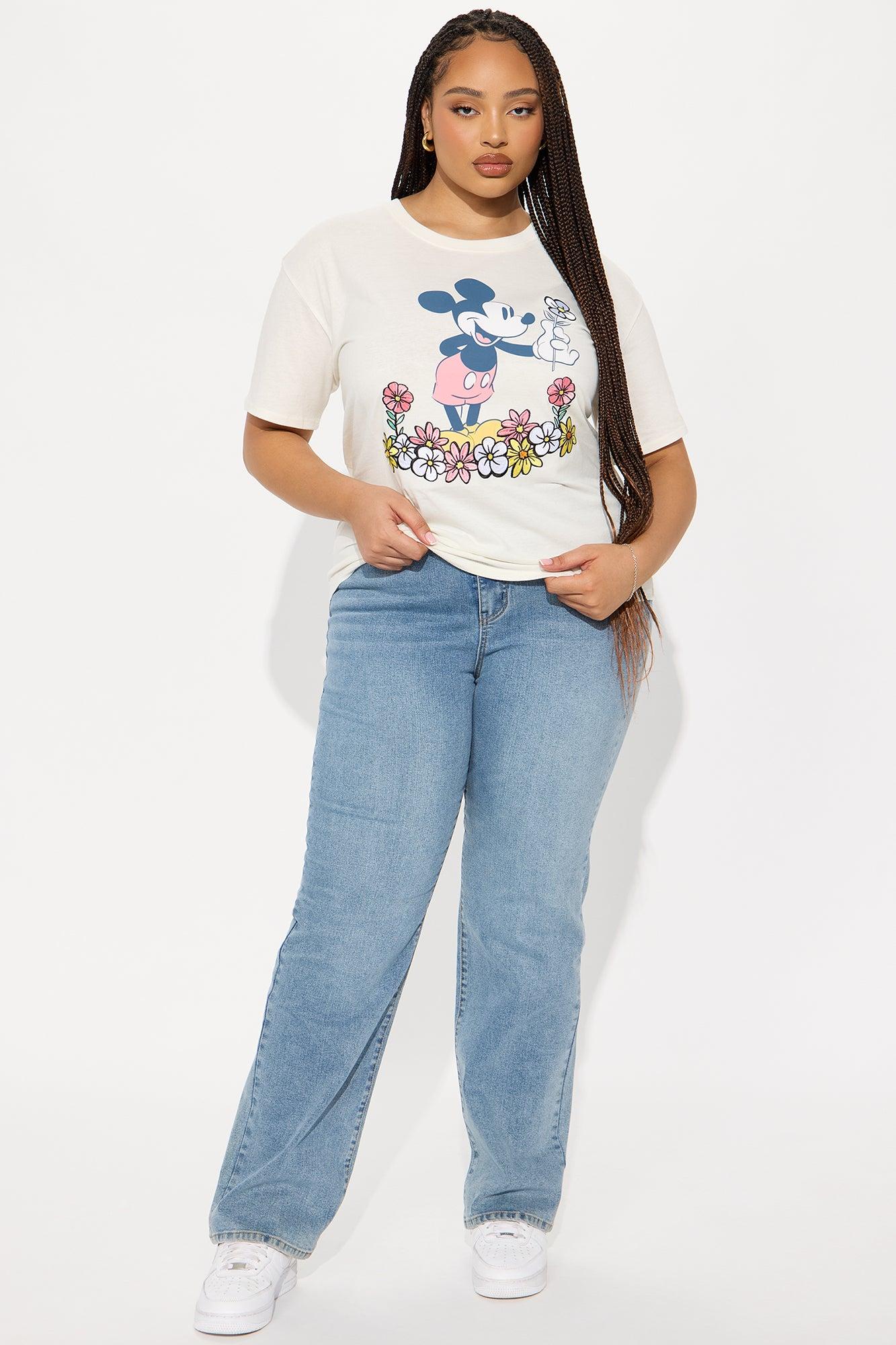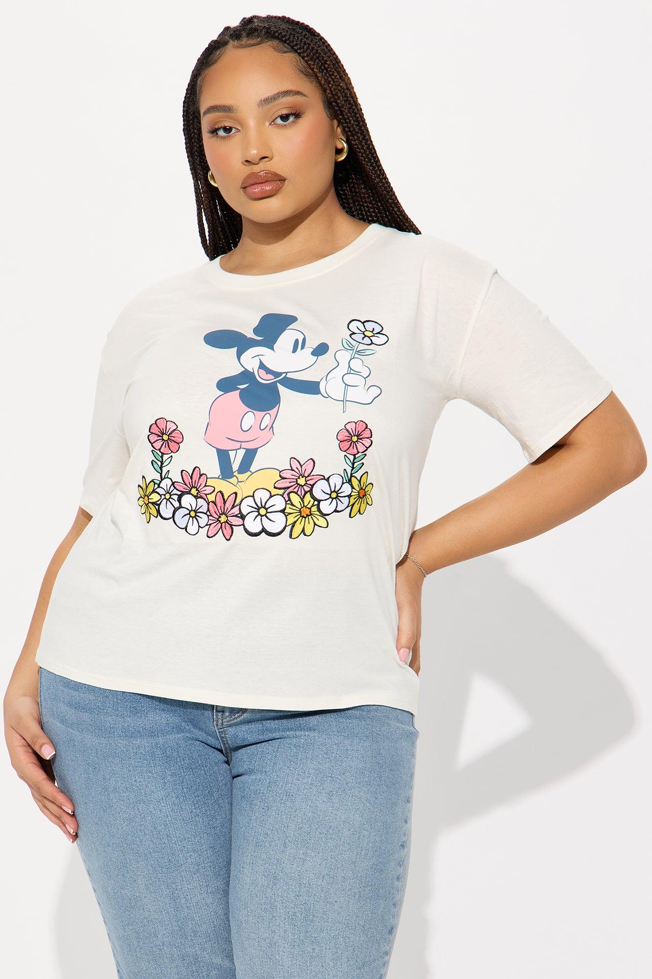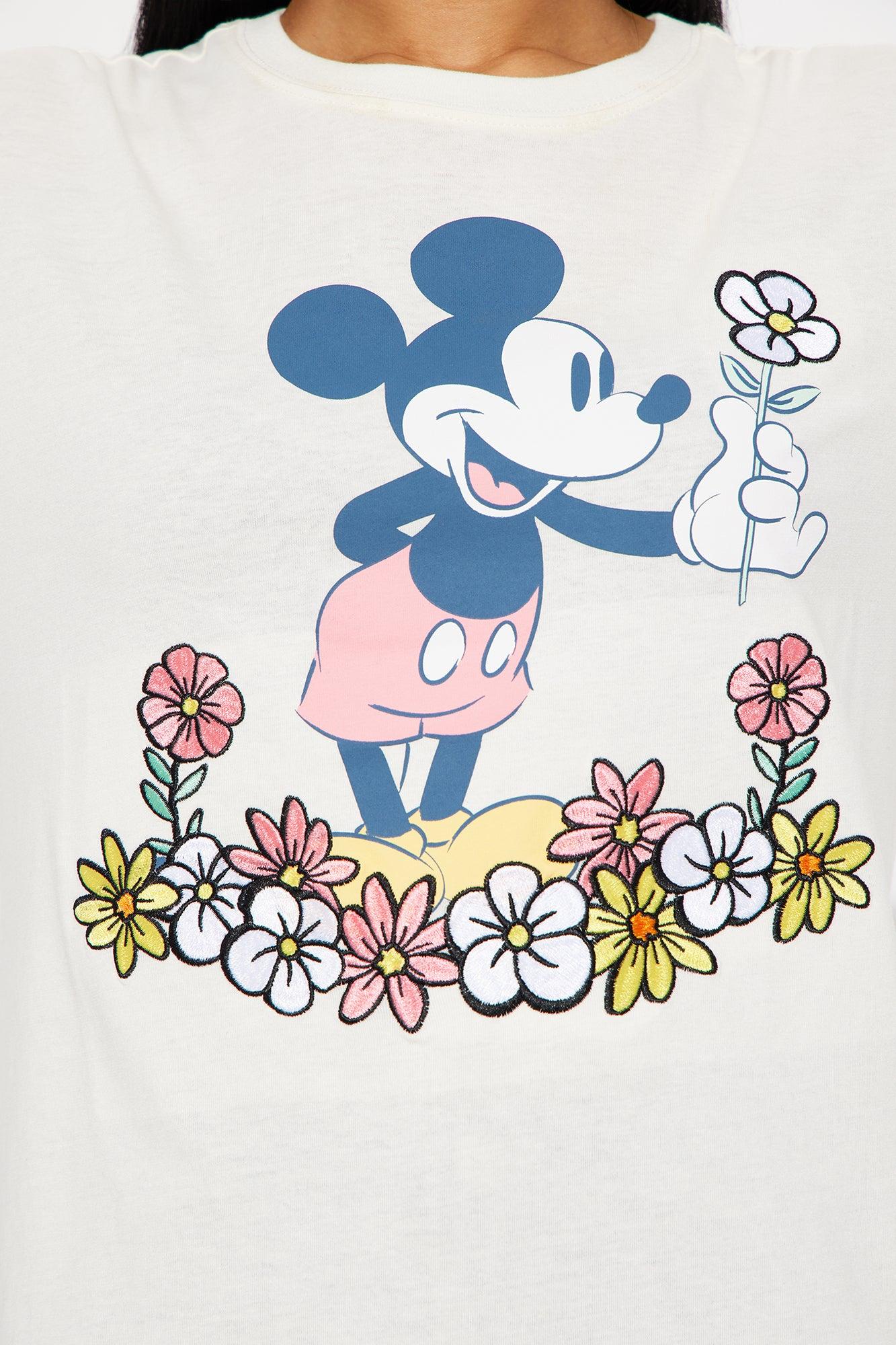 Mickey Mouse Embroidery Crew Neck Tee - Cream Female