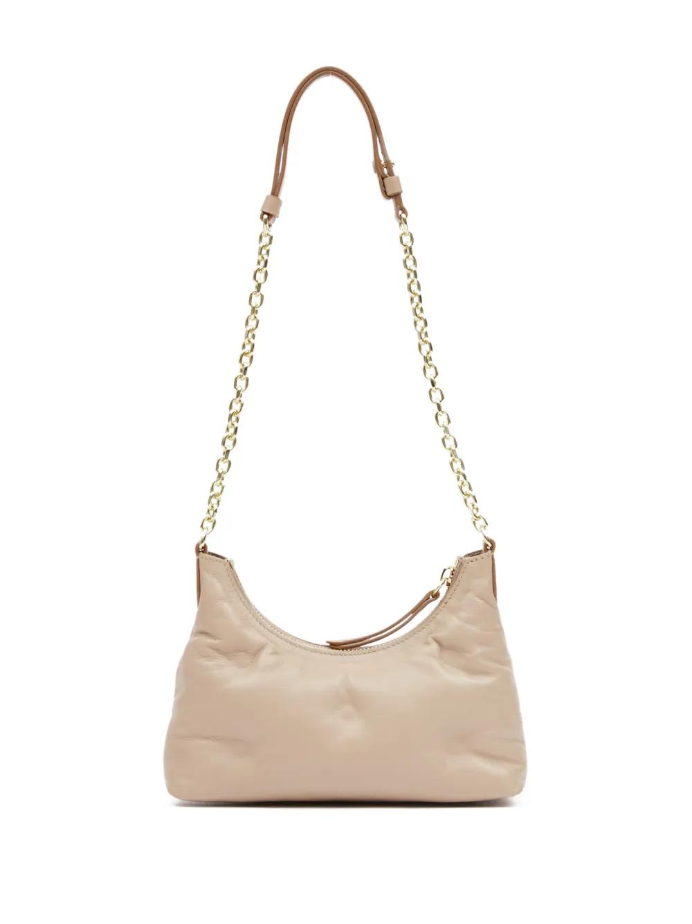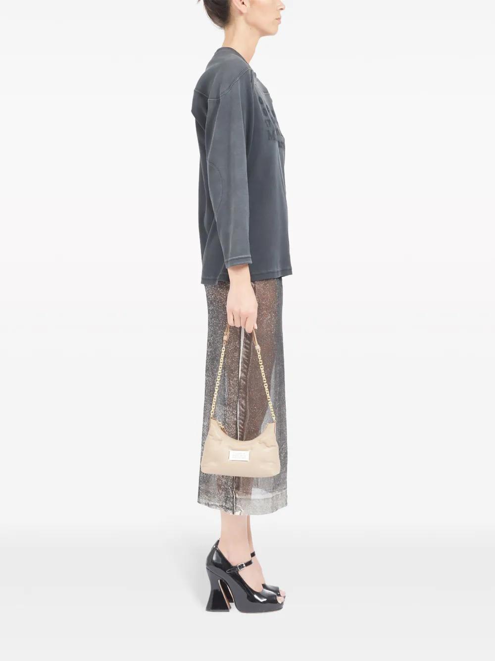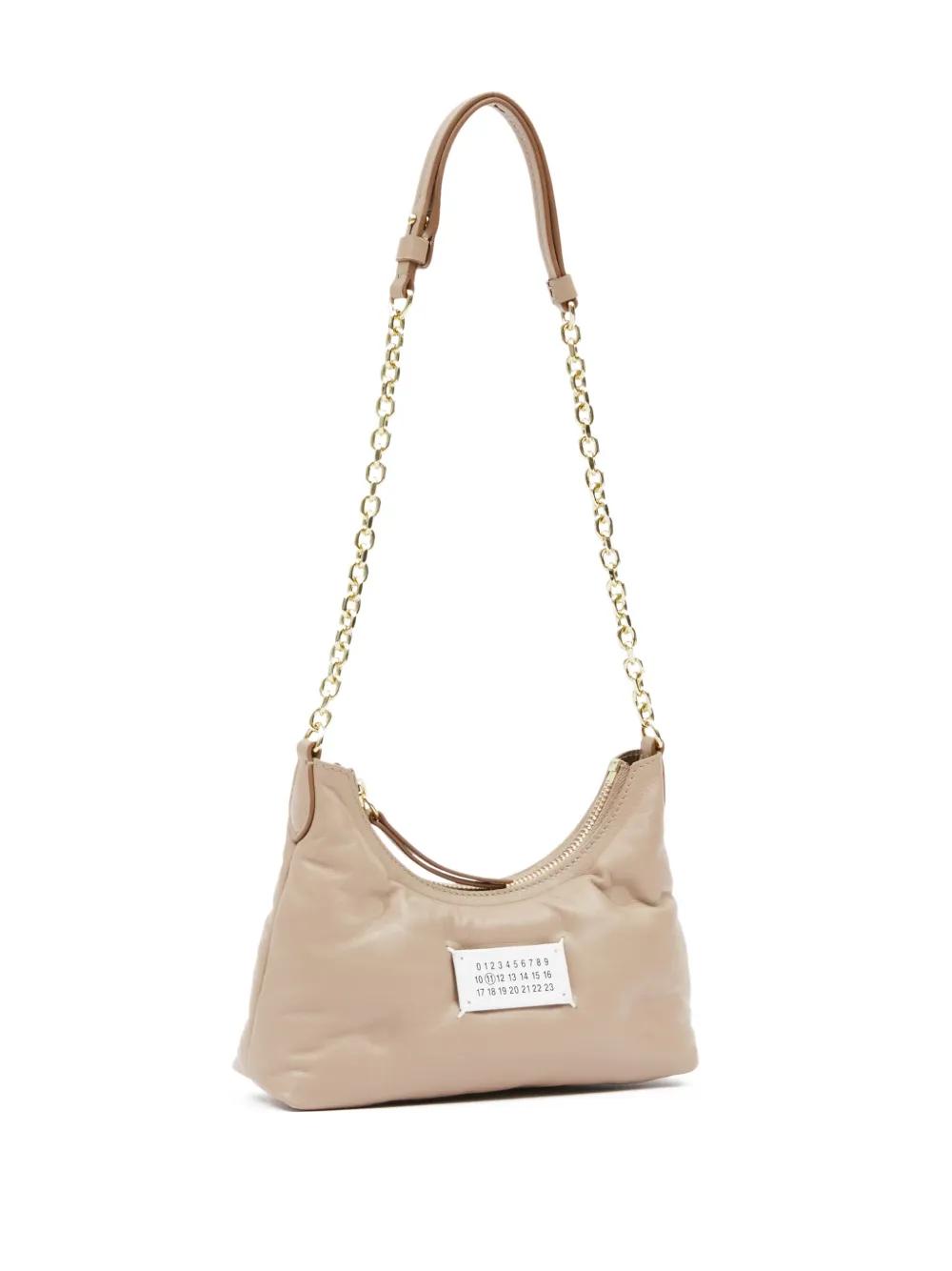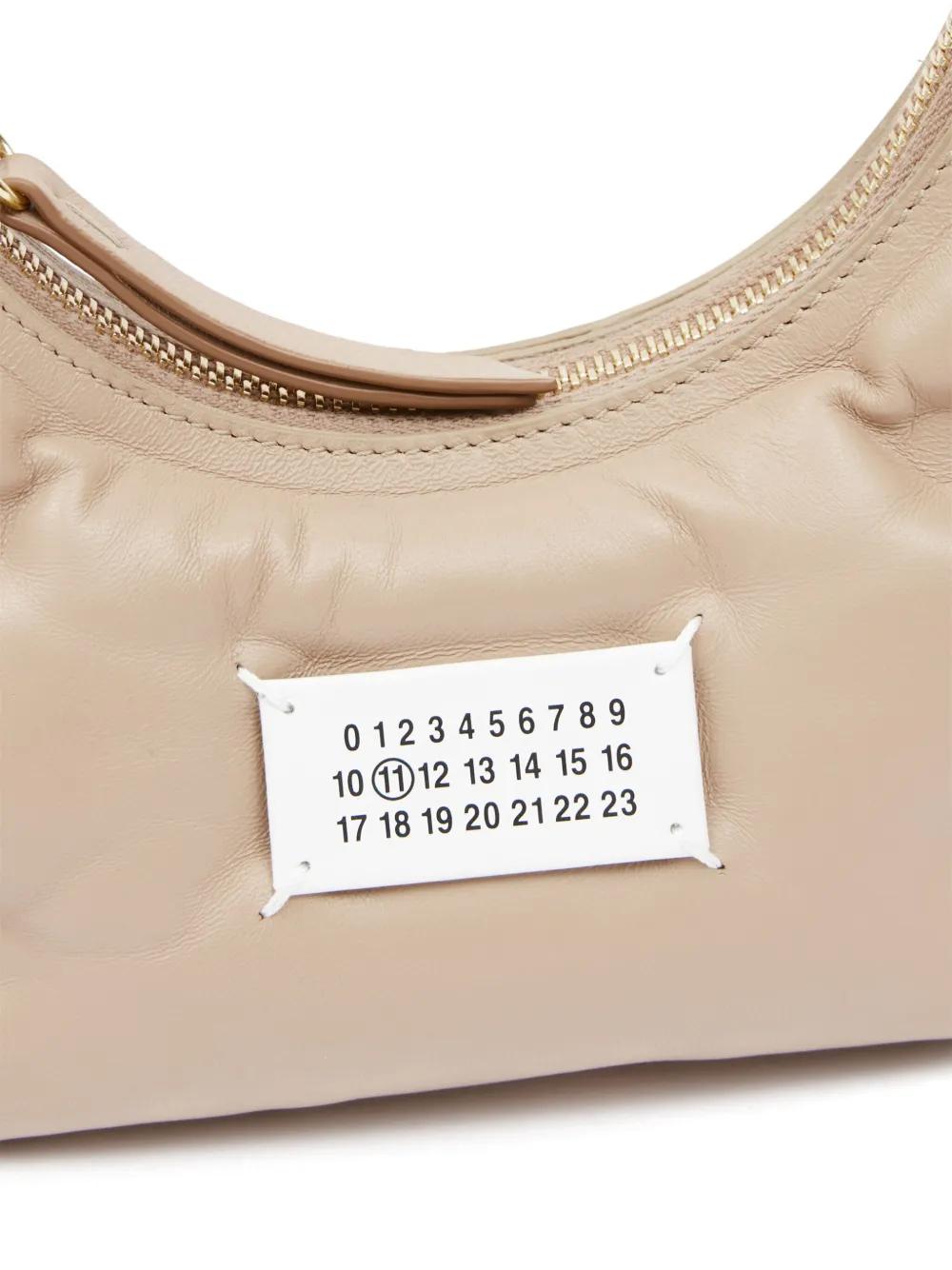 Maison Margiela's Glam Slam line is defined by tufted quilting, that lends its pieces a soft pillowy look. A case in point, this shoulder bag is crafted from beige leather, boasting an arched silhouette and the iconic numbers motif appliquéd at the front.