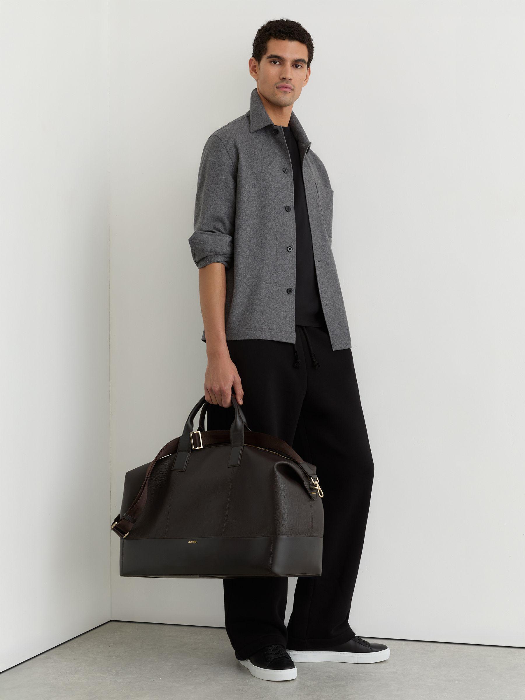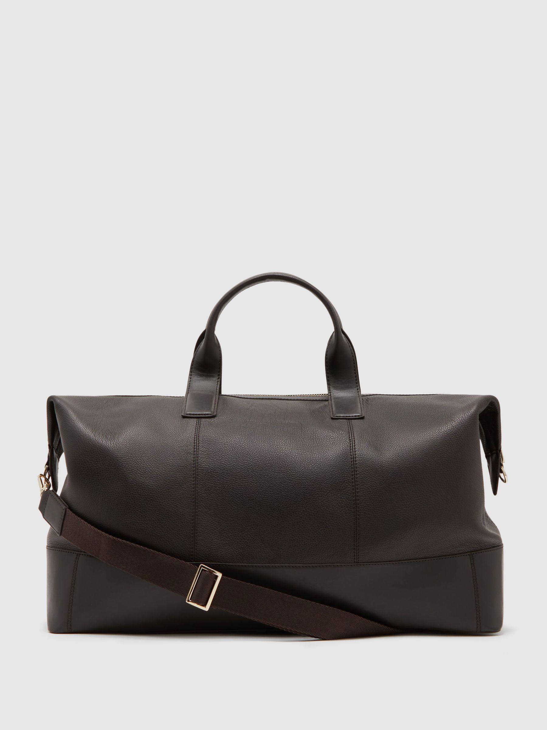 Micro-Grain Leather Weekend Bag in Dark Brown