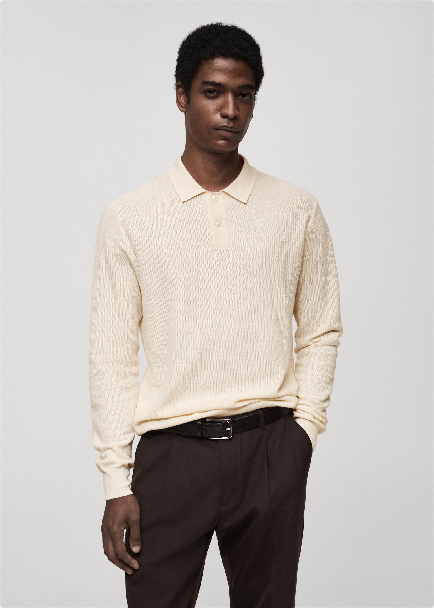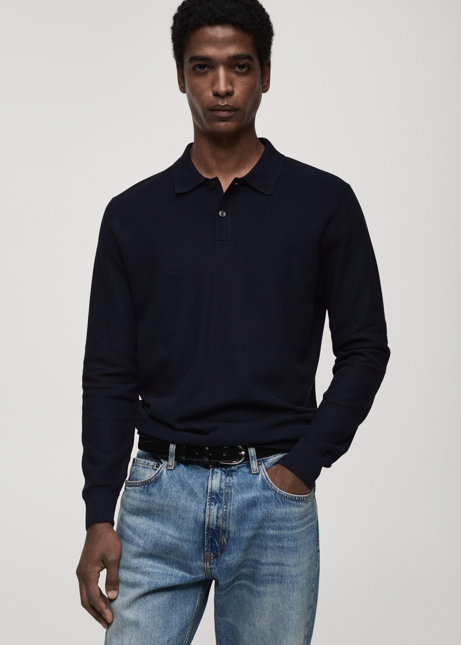 Micro-structured cotton knitted polo shirt - Men | MANGO USA