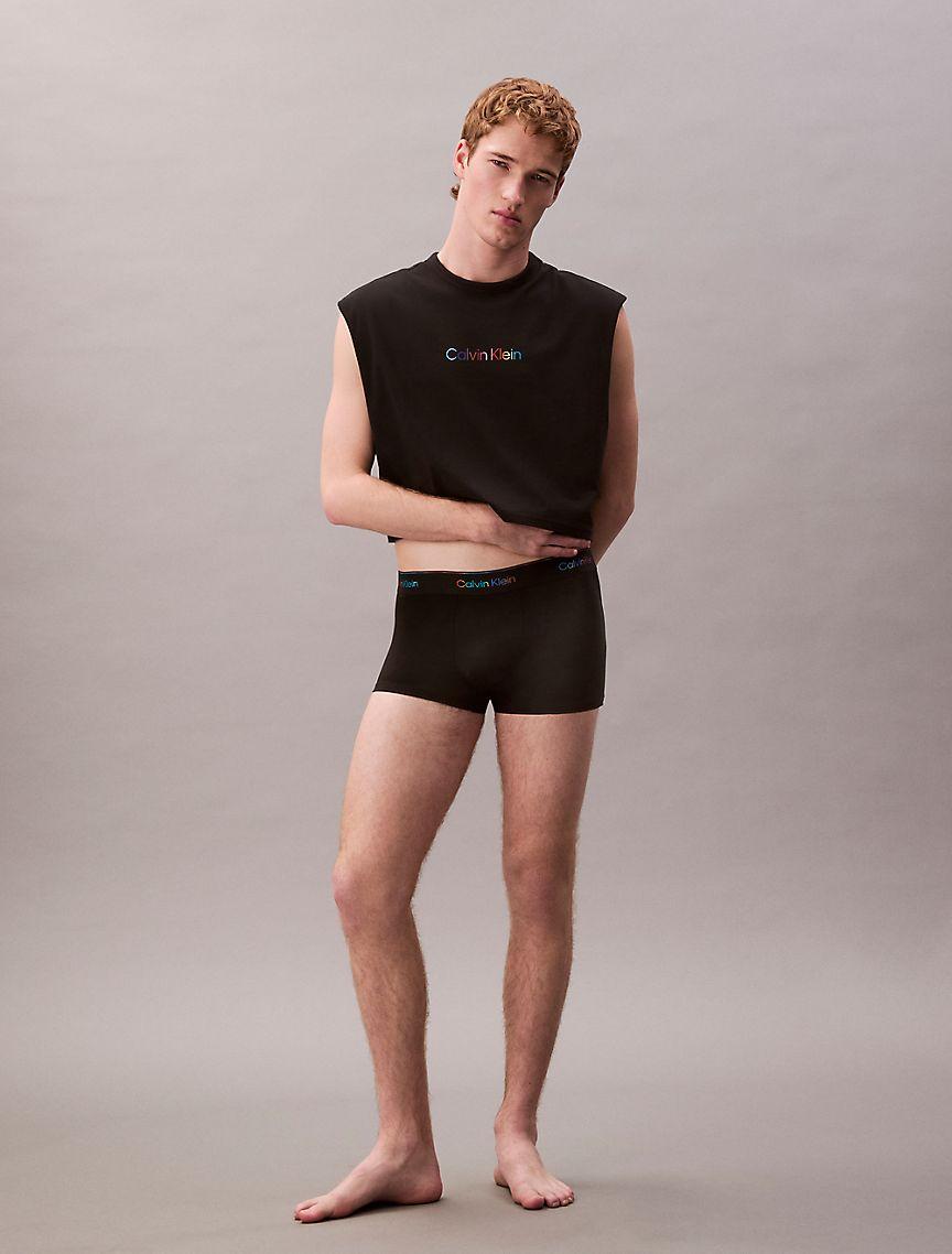 Inspired by the spectrum of pride. Maximum comfort with smooth microfiber stretch. This Calvin Klein silhouette is designed with a colorful logo flexible waistband and moisture wicking for all-day performance.Made with at least 85% certified recycled microfiber polyester.