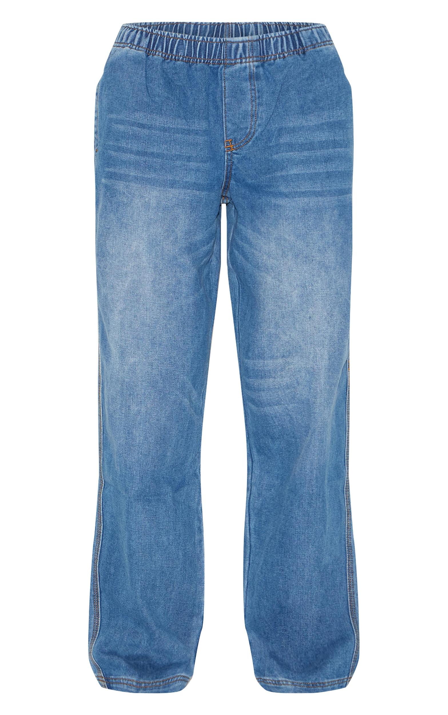 Make a statement in these mid blue elasticated waistband wide leg jeans. Made from a classic mid blue material with an elasticised waistband and a wide leg fit. Team these jeans with your go-to accessories to feel chic this season. Length approx 77.5cm/30.5inch (Based on sample size US 4)Model wears size UK 8/ EU 36/ AUS 8/ US 4Model Height - 5ft 7inchp]:!mb-4inch>Brand: PrettyLittleThingCategory: DenimProduct type: Wide Leg JeansColor: Mid Blue WashMaterial: Rigid DenimOccasion: Day