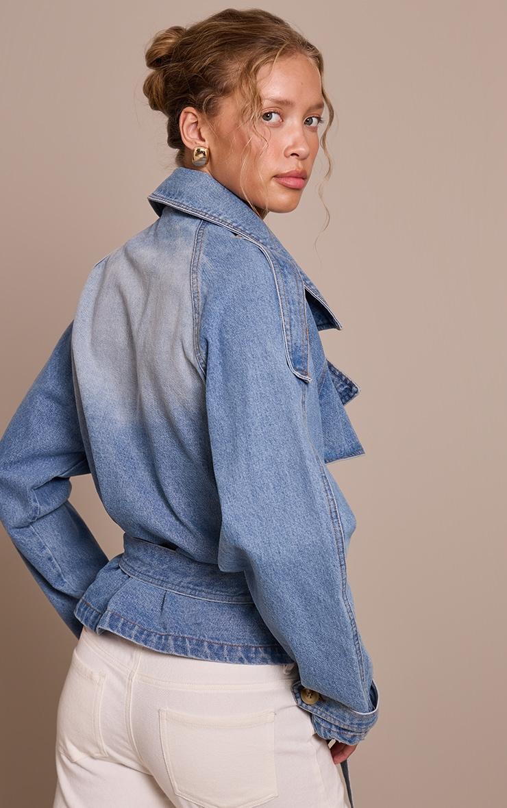 Introducing the mid blue wash belted cropped button detail denim trench. Made from mid blue toned denim, this jacket has a cropped fit, button fastenings and a trench style fit. Layer it over a neutral look to let the jacket shine, and accessorise with ballet flats and gold stud fastening earrings.Length approx 48.5cm/19inch (Based on sample size US 4)Model wears size UK 8/ EU 36/ AUS 8/ US 4Model Height - 5ft 10inchp]:!mb-4inch>Brand: PrettyLittleThingCategory: DenimProduct type: Cropped Denim JacketColor: Mid Blue WashMaterial: Rigid DenimSleeves: LongOccasion: Day