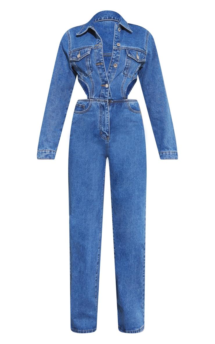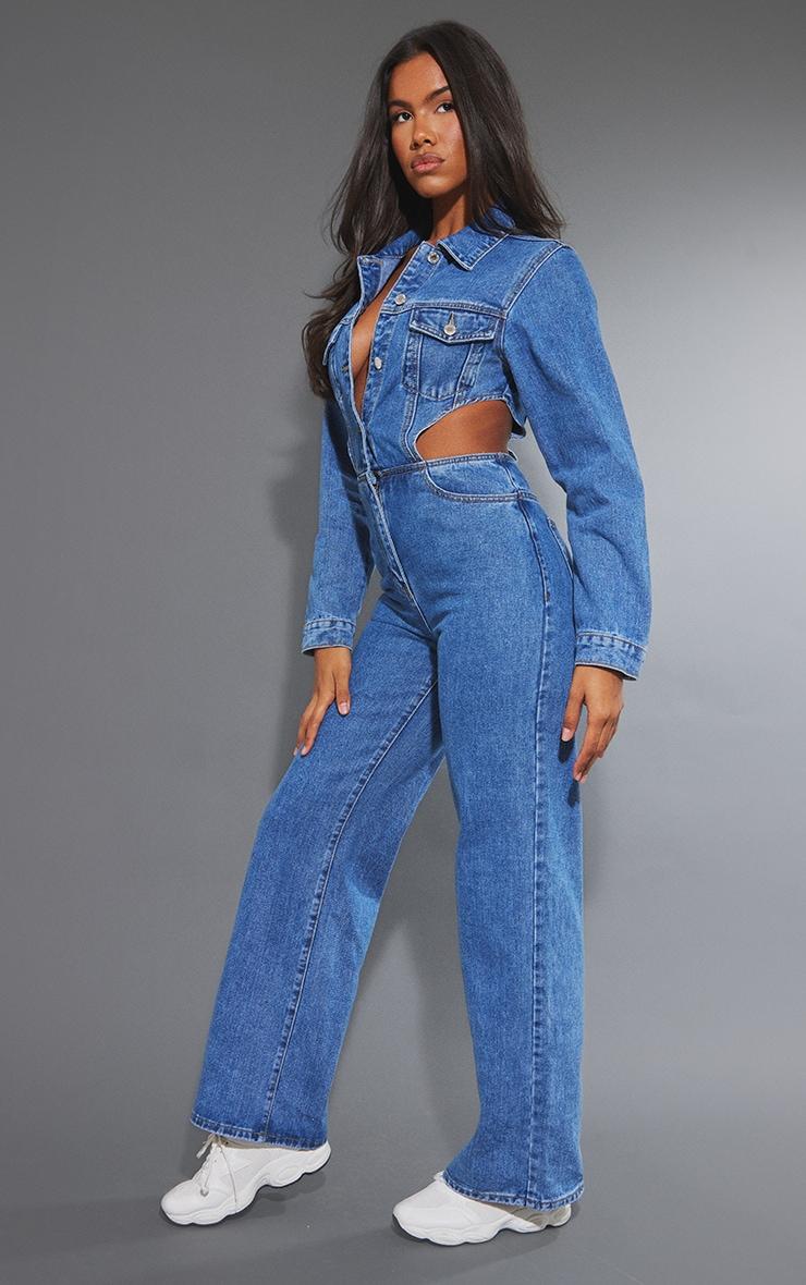 Level up your denim collection with this jumpsuit. Featuring a mid blue denim wash material with a cut-out waist and a wide leg fit, what's not to love? Pair your chunky white kicks, a black shoulder bag to level up the look. Length approx 154cm/60.5inch (Based on a sample size UK 8) Model wears size UK 8/ EU 36/ AUS 8/ US 4Model Height - 5ft 9inchp]:!mb-4inch>Category: DenimProduct type: Denim JumpsuitsColor: Mid Blue WashMaterial: Rigid DenimDesign: PlainOccasion: Day