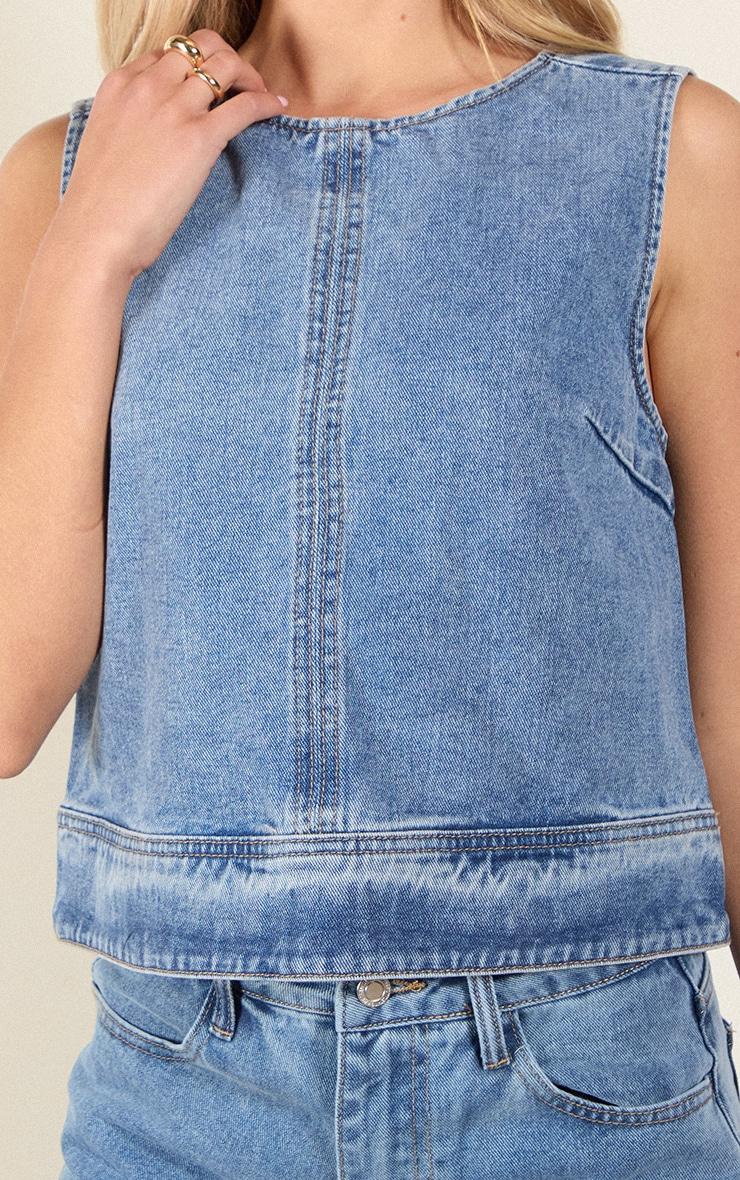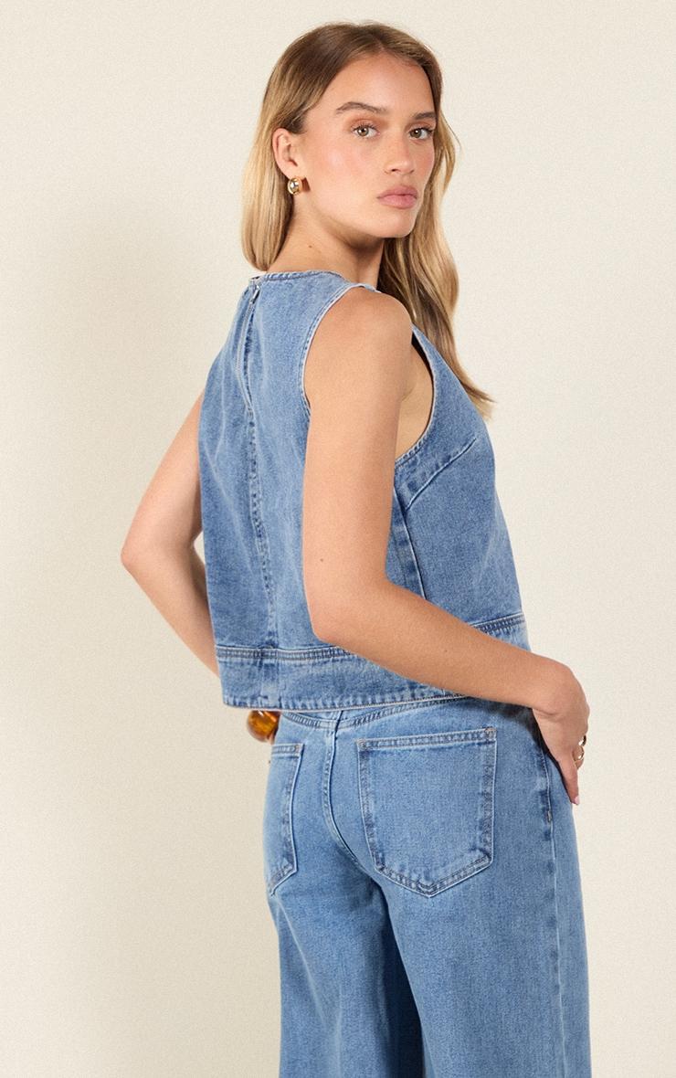 Keep it structured with this mid blue wash round neck sleeveless boxy denim top. Made from a mid blue wash denim material with a cropped boxy shape and a seam detail for a modern, clean finish. Team with your favorite gold accessories and slip-on sandals to complete the look we are loving right now.Length approx 48.5cm/19inch (Based on sample size US 4)Model wears size UK 8/ EU 36/ AUS 8/ US 4Model Height - 5ft 7inchp]:!mb-4inch>Brand: PrettyLittleThingCategory: DenimProduct type: Denim TopColor: Mid Blue WashMaterial: Rigid DenimOccasion: Day