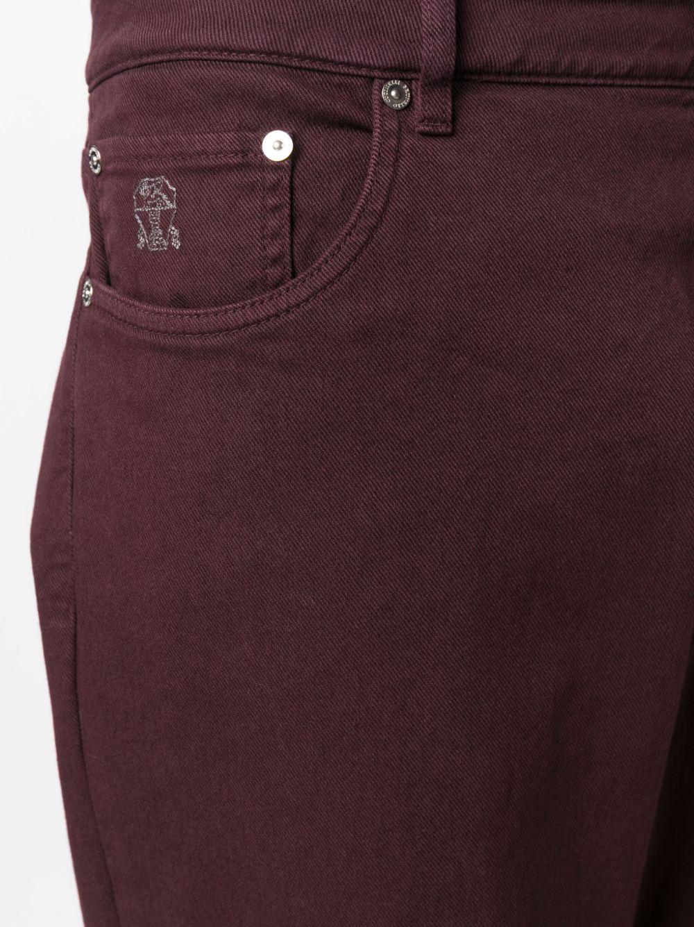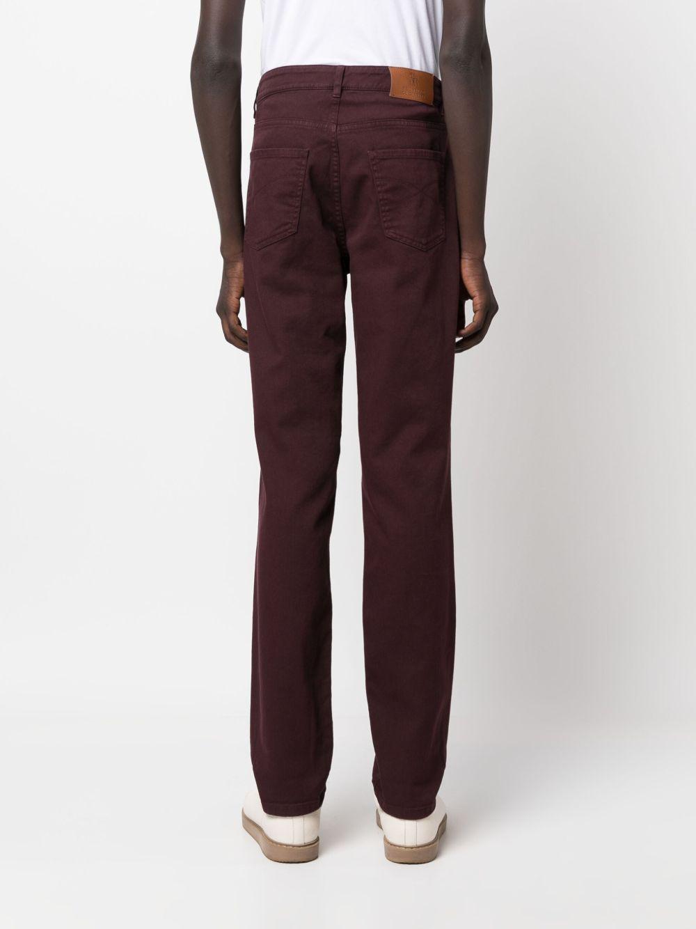 Brunello Cucinelli mid-rise straight-leg jeans | Red | bordeaux red | cotton | denim | mid-rise | straight leg | logo patch to the rear | belt loops | front button and zip fastening | classic five pockets | Cotton/Calf Leather/Cotton/Elastane | Regular-Fit & Straight Leg Pants | Pants | Clothing | Men